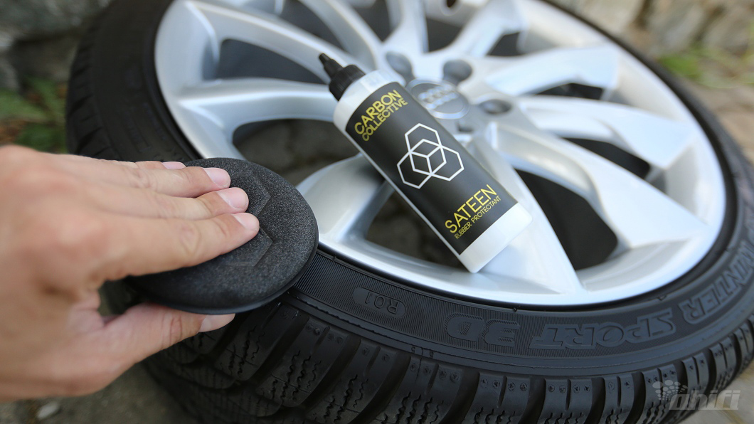 Carbon Colective Sateen Tyre & Rubber Protectant, který je v tekuté formě a velmi snadno se nanáší pomocí