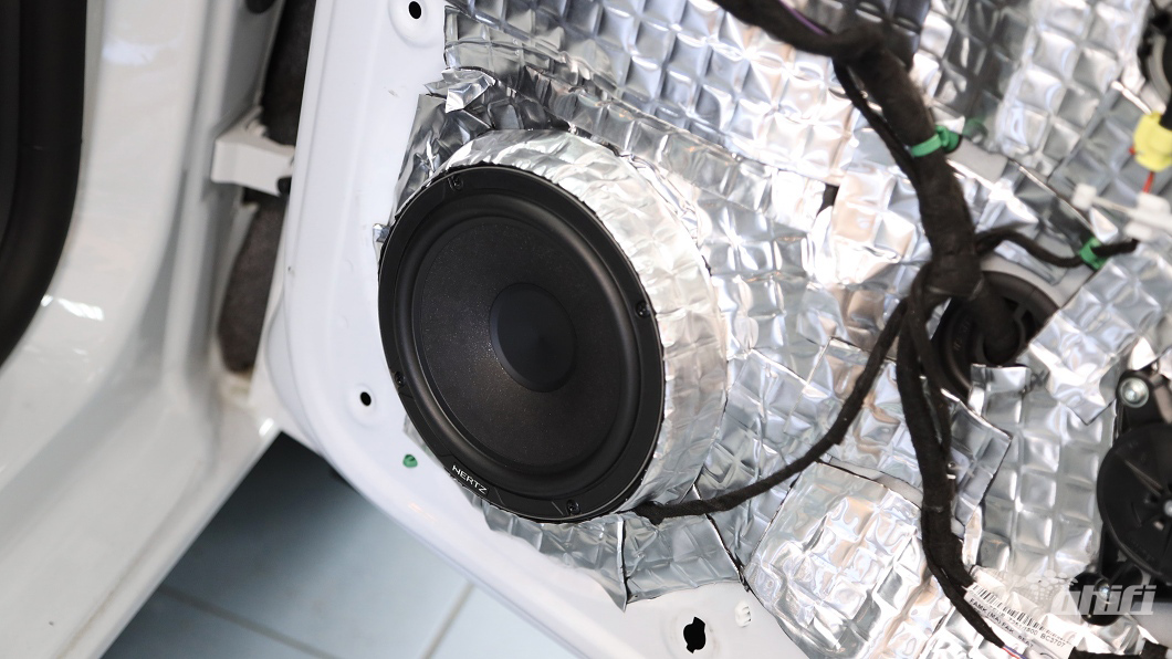Zvuk reproduktorů v panelu je jedna věc, důležitější však je, jak jsou reproduktory schopné zahrát ve svém přirozeném prostředí, tedy ve vozidle. Abychom reproduktory ideálně otestovali a posoudili jejich zvuk se všemi plusy a mínusy, bylo by nejvhodnější je zapojit na kvalitní aftermarket autorádio a externí zesilovač. Nám ale primárně jde o zhodnocení schopností reproduktoru v nejčastějších podmínkách instalace. Reproduktory jsme tedy chtěli otestovat především v situaci, kdy jako zdroj hudby bude tovární nebo aftermarket autorádio. Nejčastěji zákazníci požadují právě výměnu reproduktorů při zachování továrního autorádia, zesilovač instalujeme převážně na dražší reproduktory s vyšším výkonem. Pro testování jsme zvolili vozidlo Seat Leon, v jehož výbavě bylo tovární autorádio a základní ozvučení. V prvé řadě jsme důkladně vytlumili dveře vozidla, kde jsme zpevnili vnější i vnitřní plech dveří materiálem Profidamp Alubutyl 18 a za reproduktor jsme aplikovali materiál Gladen Aero Wave. Tento materiál absorbuje stojaté vlny, které se šíří za reproduktorem a napomáhá vytvoření co nejlepších podmínek pro zvuk reproduktor ve dveřích. Aplikace tlumících materiálů má tedy za následek zlepšení basové složky i obecně zvuku středobasových reproduktorů, zamezí také vibracím, nežádoucím zvukům i například akustickému zkratu. Tlumení doporučujeme provést při každé výměně reproduktorů, jen tak z nich dostanete maximum toho, co umí nabídnout.