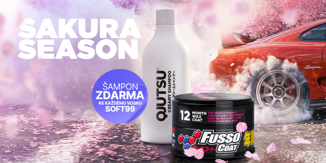 Jaro je tady a s ním přichází akční nabídka Sakura Season od japonského výrobce Soft99. Pokud jste přemýšleli nad novým voskem, teď je ideální chvíle – ke každému zakoupenému vosku Soft99 totiž získáte zdarma autošampon Soft99 Qjutsu Creamy Shampoo. A co je nejlepší – akce se násobí. Při nákupu dvou vosků získáte dva šampony, při třech tři atd.