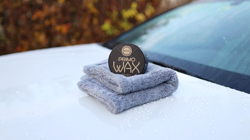 Známé rčení "to nejlepší na závěr" platí i v našem případě. Náročnou přípravu laku máme úspěšně za námi a čeká nás lahůdka v podobě voskování laku. Celý tento článek vznikl kvůli vosku Infinity Wax Primo, tak si o něm nejprve pojďme něco zajímavého napsat. Primo je hybridní vosk a obsahuje tedy jak přírodní, tak syntetické složky. Pokud vás zajímá problematika vosků a rozdíly mezi jednotlivými druhy, doporučujeme nejprve přečíst náš článek, který popisuje hlavní rozdíly mezi přírodními, syntetickými a hybridními vosky. V čem je ale Primo jiný než klasické hybridní vosky? Většina hybridních vosků obsahuje přírodní karnaubu a syntetické polymery, které prodlužují životnost vosku. Primo však kromě nejkvalitnější brazilské T1 karnauby obsahuje ještě další 4 druhy přírodních vosků! Konkrétně montanskou karnaubu, kandelinový vosk, mikronizovaný parafín a části organického včelího vosku. Tyto vosky jsou dokonale vyváženy, aby poskytovaly ohromující úrovně lesku a byly dokonale kompatibilní s laky. Přírodní vosk sám o sobě má svá omezení a v Primo je dokonale využit každý vosk v dokonalé koncentraci. Další specialitkou Prima je obsah jak tekutých, tak pevných polymerů oxidu siřičitého, tedy SiO2. Ten dodá laku dlouhou životnost a vysokou odolnost proti chemikáliím. A kombinace toho všeho poskytne laku lesk a odvod vody, jaký jste u vosku ještě nikdy neviděli. Nejen náš názor je ten, že v odvodu vody předčí i mnohé keramické ochrany. A co se týče hloubky lesku, tak jednoznačně vítězí na plnou čáru. Každopádně dost bylo teorie, pojďme k praxi. K aplikaci opět budete potřebovat aplikátor a mikrovláknovou utěrku. A znovu doporučíme aplikátor od Sam's Detailing, tentokrát Sam's Detailing Wax Applicator určený pro voskování. Sam si se svými aplikátory opravdu vyhrál do detailu. Aplikátor se skvěle drží a jeho aplikační plocha je velmi jemná pro nejšetrnější voskování. Jeho design navíc umožní rovnoměrné a velmi rychlé nanášení vosku. Musím za nás všechny napsat, že tak rychle navoskované auto jsme nikdy neměli. Přejděme tedy konečně k aplikaci. Vosk naneste na aplikátor a poté na lak. Vosk aplikujte ideálně pohyby v jednom směru, vyhněte se krouživým pohybům. A stačí ho opravdu málo. Co je na tomto vosku geniální je právě aplikace. U aplikace normálního vosku bychom vám poradili, ať pracujete po částech a po pár minutách jednotlivý díl karoserie rozleštili. To u Prima neplatí a je v podstatě jedno, jestli jej necháte zavadnout 3 minuty nebo (bez přehánění) půl hodiny. Půjde vždy snadno rozleštit. Klidně tedy můžete nanést vosk na více částí karoserie a poté rozleštit mikrovláknovou utěrkou, například již výše zmíněnou Purestar Premium Buffing Towel, kterou vidíte i na fotce níže. Vzhledem k snadné aplikaci doporučujeme nanést i druhou vrstvu, která ještě prodlouží životnost a znásobí efekt tohoto vosku. Mezi jednotlivými vrstvami by měla být minimálně hodina pauza. A co napsat závěrem? Snad jen, že aplikaci si budete užívat i díky naprosto skvělé citrusové vůni tohoto vosku.