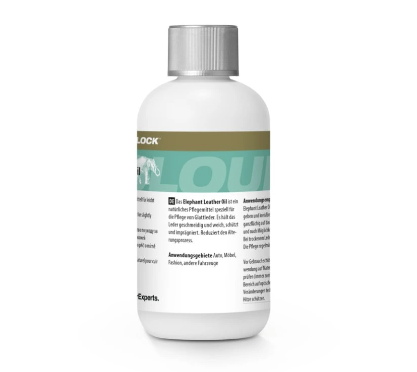 COLOURLOCK Elephant Leather Oil je přírodní přípravek speciálně vyvinutý pro péči o hladkou kůži. Jeho hlavní předností je schopnost udržovat kůži pružnou, měkkou a v lepší kondici i při pravidelném používání. Zároveň pomáhá chránit povrch a podporuje jeho voděodolnost, takže je vhodný pro zákazníky, kteří chtějí koženým výrobkům dopřát intenzivnější péči a delší životnost.