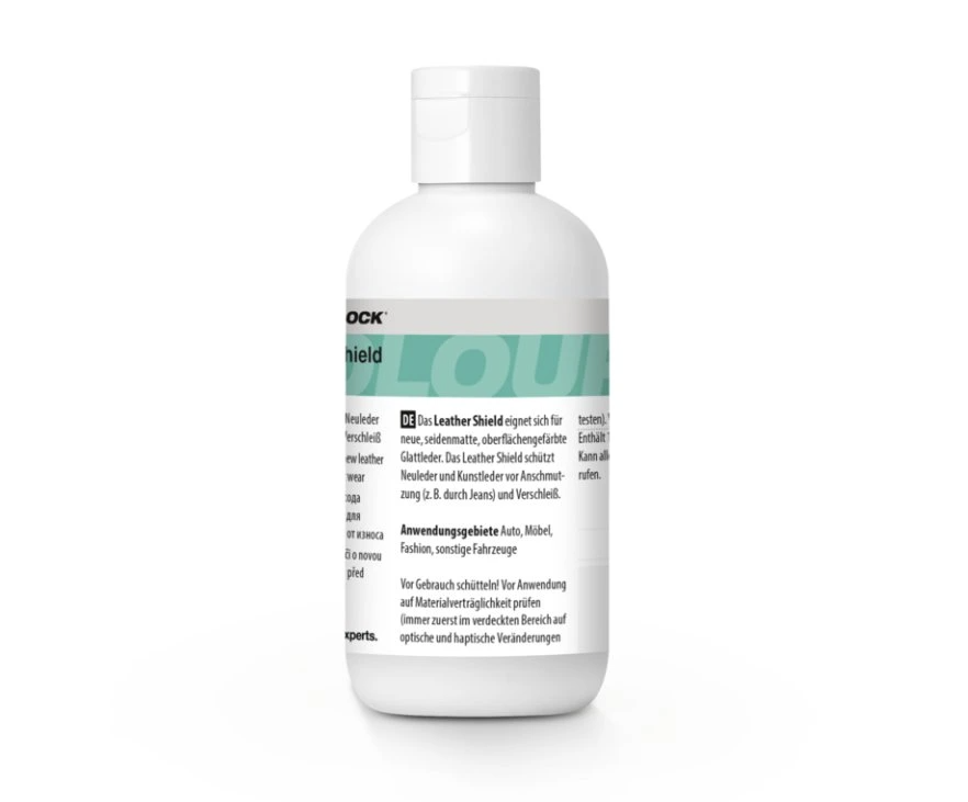 Colourlock Leather Shield je ošetřující a vyživující impregnace na kůži určená pro pravidelnou péči o hladkou, povrchově zabarvenou kůži. Přípravek je na vodní bázi, obsahuje antioxidanty a UV ochranný systém, má vodoodpudivé vlastnosti, pomáhá chránit kůži před odřeninami a zároveň ji udržuje pružnou. Hodí se zejména pro hedvábně matnou hladkou kůži v interiérech vozidel, kožený nábytek i další kožené čalounění a výrobce jej uvádí jako vhodný především pro starší typy kůže. Před aplikací by měl být povrch nejprve vyčištěný a balení 100 ml je vhodné pro běžnou pravidelnou péči o kožené povrchy.