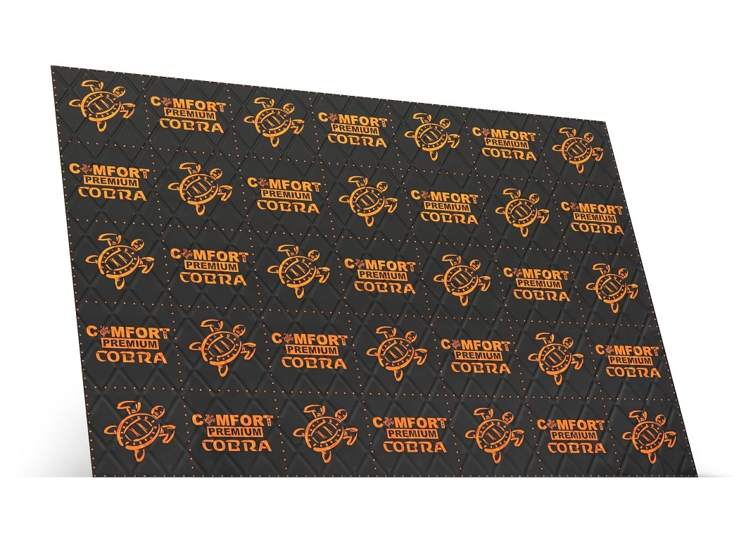 Prémiový antivibrační materiál od společnosti Comfortmat, který vyniká v současnosti nepřekonatelným poměrem účinnosti a nízké hmotnosti. Materiál představený v roce 2022 nahrazuje svého úspěšného předchůdce Comfortmat Dark D2 a přináší hned několik vylepšení, nových technologií výroby i upravený design. Nejdůležitější novinkou tohoto exkluzivního antivibračního materiálu je zvýšená účinnost s akustickým ztrátovým činitelem (MLF) o hodnotě 0,40 jednotek, kterým nedisponuje žádný jiný antivibrační materiál na dnešním trhu o tloušťce do 2,3 mm. Povedlo se tedy dosáhnout stejné účinnosti jako u původního materiálu Dark D3 s tloušťkou 3 mm, hmotnost Cobry je však o 20% nižší. Takové parametry byly umožněny zejména díky nově vyvinutému tmelu, který kromě výše uvedeného disponuje i výrazně vyšší stabilitou a přilnavostí. Inženýři Comfortmatu se pustili i do vývoje zcela nové hliníkové folie, která byla vůbec poprvé použita v automobilovém průmyslu a podílí se na razantím navýšení účinnosti. Na první pohled zaujme i nový matný design se vzorem hadí kůže, který navíc umožní i vyšší přilnavost druhé vrstvy odhlučnění. Tak jako všechny antivibrační materiály Comfortmat disponuje i Cobra odolností vůči vodě, vlhkosti a olejům, má antikorozní vlastnosti a díky odolnosti proti extrémním teplotám si ponechává stejné vlastnosti v létě i zimě.
