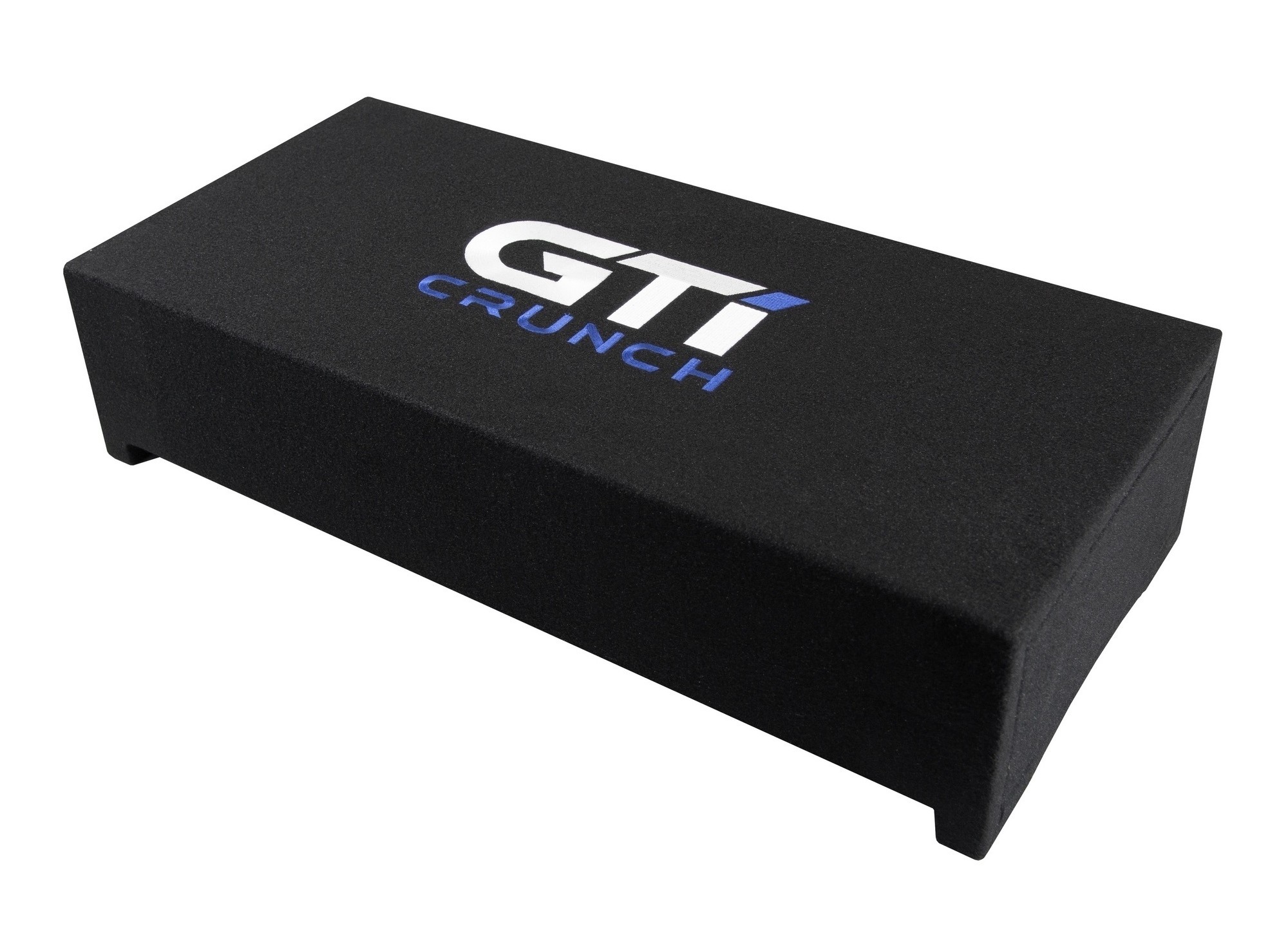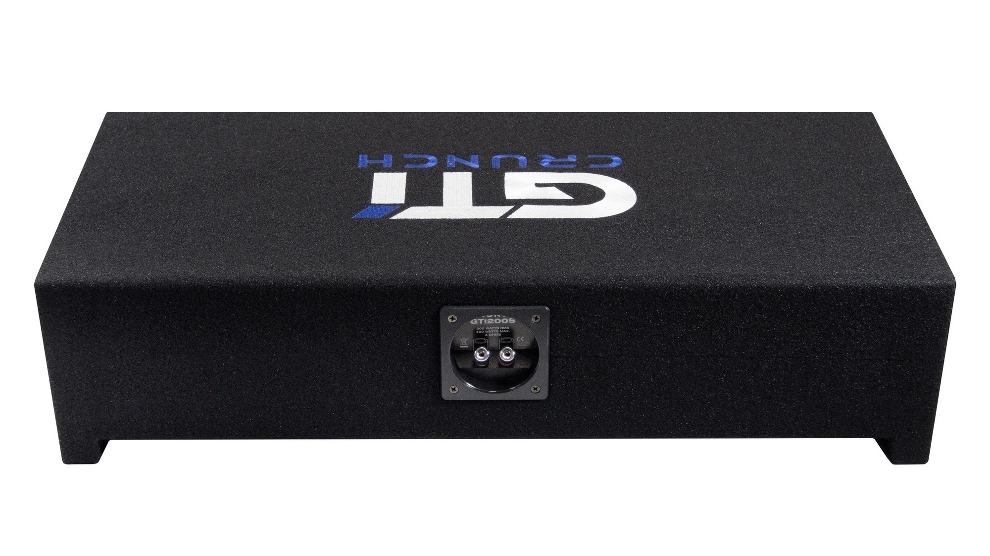Crunch GTI200S je kompaktní subwooferový systém navržený primárně pro instalaci v konfiguraci downfire. Konstrukce využívá aktivní 20 cm (8”) subwoofer doplněný pasivní membránou, která umožňuje dosáhnout výrazného basového projevu bez potřeby dlouhého bassreflexového nátrubku nebo velkého objemu ozvučnice. Díky tomu může být skříň výrazně nižší a vhodná i pro instalace, kde je v zavazadlovém prostoru omezené místo. Ozvučnice je konstruována tak, aby mohla být umístěna naležato na podlaze kufru a fungovala jako pevný podklad, na který lze bez obav odkládat zavazadla nebo nákup. Subwoofer i pasivní membrána jsou vybaveny hliníkovými membránami, které zajišťují dostatečnou tuhost při vyšším zatížení. Systém je optimalizován právě pro downfire provoz a je vybaven push terminály pro snadné připojení zesilovače.