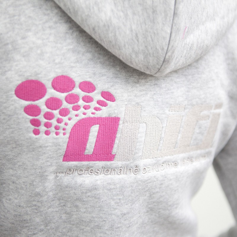- Pohodlná mikina s růžovým logem Ahifi na prsou a přes záda.