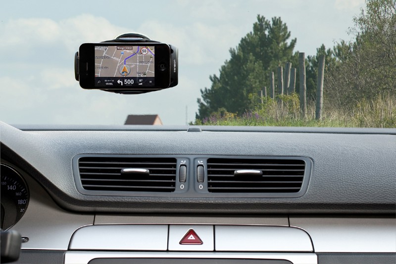 - Zobrazení navigace (pomocí aplikace v mobilním telefonu)Ddržák lze umístit na na čelní sklo, nebo přístrojovou desku automobilu.