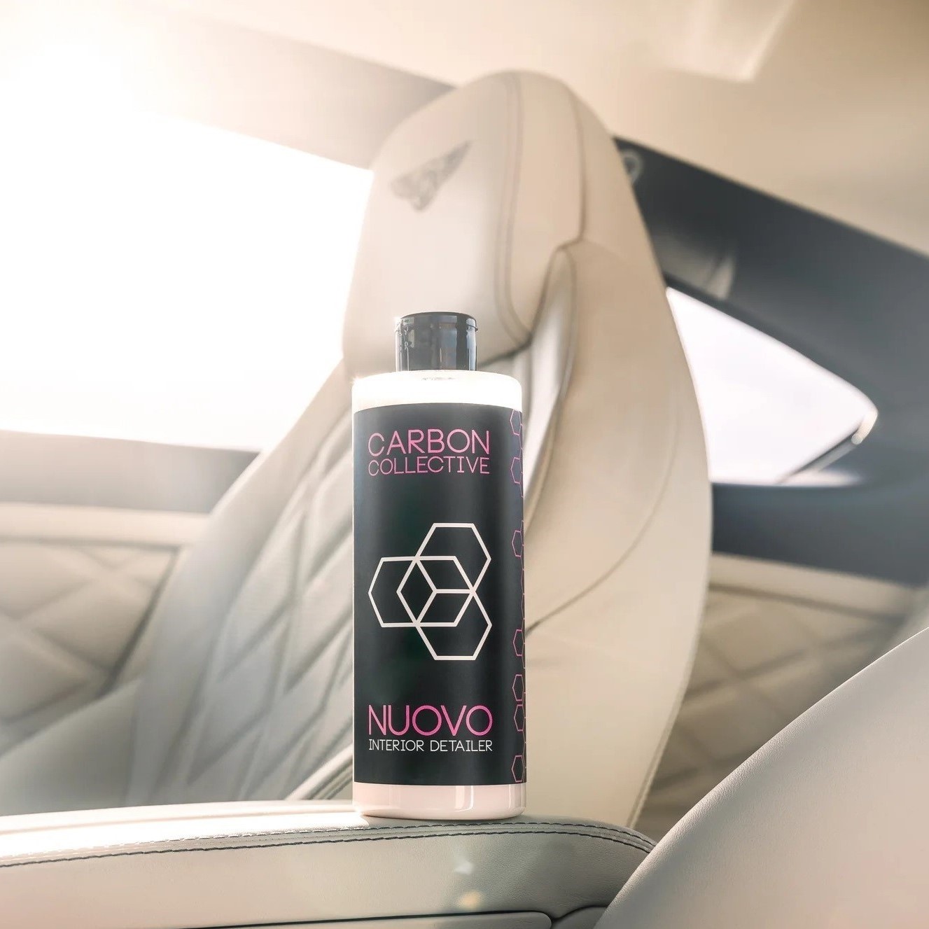 Nuovo Interior Detailer byl vyvíjen se stejným aktivním obsahem SiO2 jako keramické povlaky Carbon Collective, což zajišťuje maximální ochranu plastů v interiéru, ale i v exteriéru auta. Aplikace postřikem a setřením zanechává na všech plastových částech nemastnou povrchovou úpravu na úrovni vzhledu nového auta. Nuovo chrání před škodlivými UV paprsky a odpuzuje prach, nečistoty, vodu a skvrny. Snadno čistitelná ochranná povrchová úprava vydrží 6 měsíců u plastů v interiéru, 6 měsíců u plastů v motorovém prostoru a až 3 měsíce u vnějšího obložení. Kromě čištění a ochrany plastů Nuovo Interior Detailer osvěžuje interier vozu sladkou ovocnou vůní. Nuovo můžete aplikovat na všechny texturované plastové povrchy, pogumované povrchy, na matný a lesklý povrch, vnitřní obložení, vinyl, kůži a plasty v motorovém prostoru.