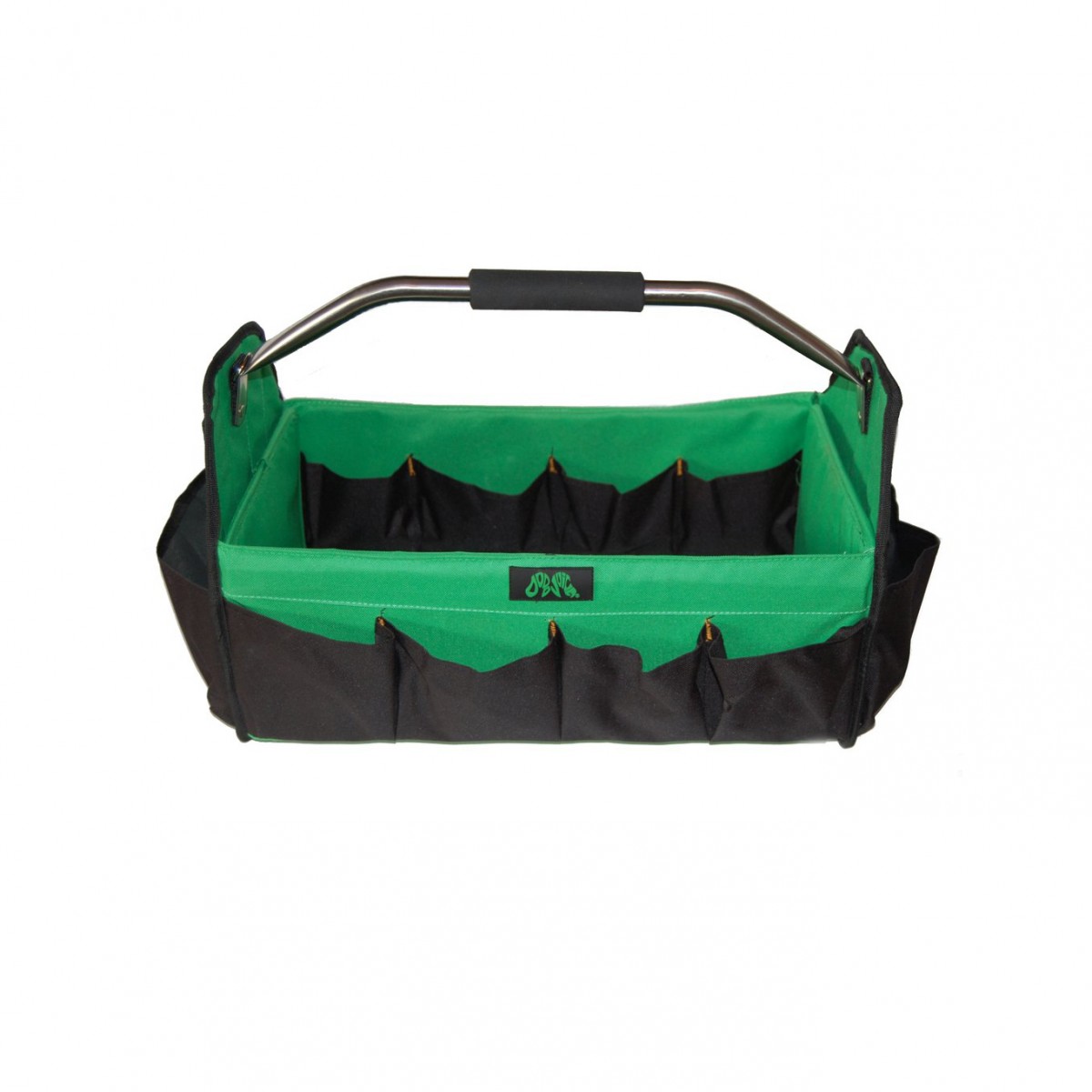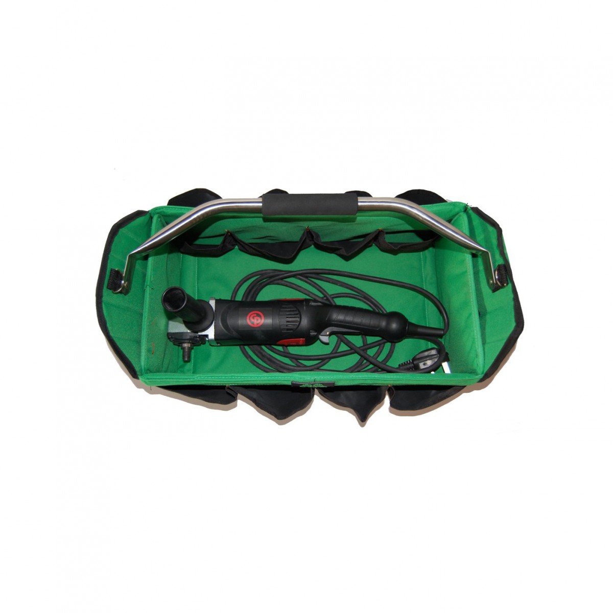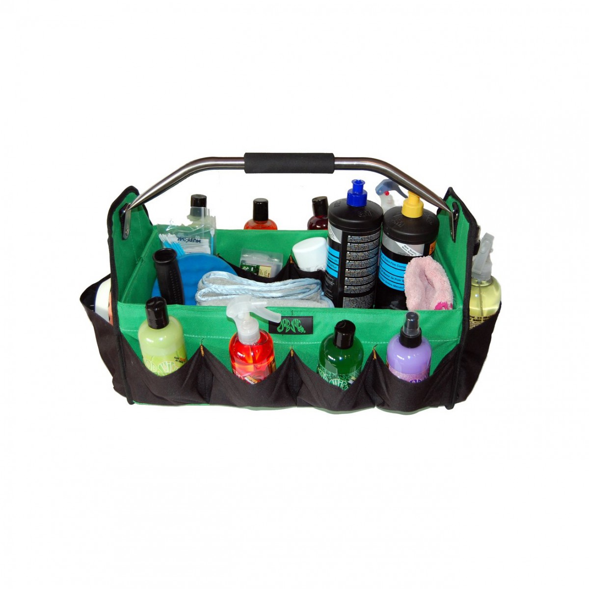 Detailingová taška Dodo Juice Tooled Up Bag je skvělým pomocníkem pro přenášení celé vaší detailingové výbavy. Tato taška má opravdu velkorysé rozměry, což znamená, že se vám dovnitř vejde několik leštiček (ve vodorovné poloze) a boční kapsy dokáží pojmout až 14 lahví o objemu 250 ml (tři v každé koncové kapse). Uvnitř jsou další čtyři kapsy - ideální pro clay, kotouče, kartáče na kola atd. Skvělý přístup do tašky získáte po sklopení držadla. Taška je na spodní straně opatřena gumovými nožičkami, což zajistí stalibitu na zemi.| Katalogové číslo | DJTUBAG |