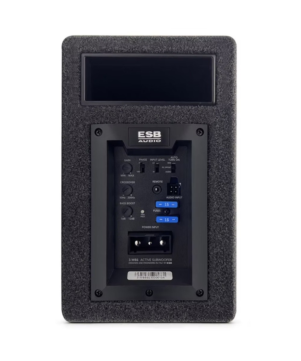 Modelová řada 3000 (Tremila) od ESB byla vyvinuta a sestavena s velkým nasazením ve výzkumu materiálů a technických řešení nejvyšší úrovně. V nabídce řady Tremila najdete široké portfolio produktů, které se vyznačují velmi kvalitním zvukem, příkladným zpracováním a použitím nejmodernějších technologií. A taktéž u subwooferů řady Tremila se můžete spolehnout na vynikající zvukovou kvalitu a nespočet inovací. Aktivní subwoofer této řady disponuje 6" měničem s papírovou membránou vyztuženou karbonovými vlákny, robustním feritovým magnetem a zejména integrovaným digitálním zesilovačem o výkonu 250 W RMS. Kompaktní bassreflexová ozvučnice s tloušťkou pouhých 15 cm zajišťuje mohutné basy s odpovídající kvalitou ESB Audio. Součástí ozvučnice je ovládací panel s plug & play konektorem pro snadné odpojení subwooferu. Na panelu najdete také ovládání gainu, dolní pásmové propusti, bass boost a výbavu doplňuje nastavení fáze. Samozřejmostí je automatické zapínání a v balení najdete také dálkové ovládání.