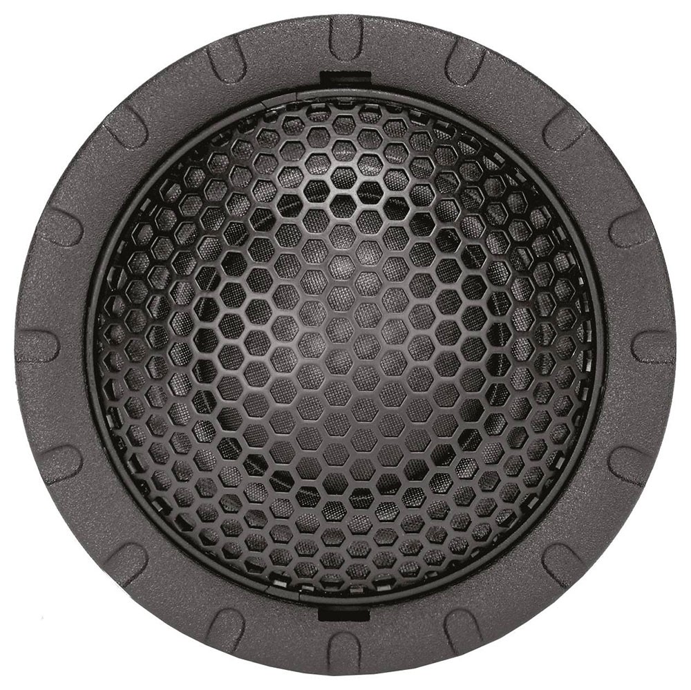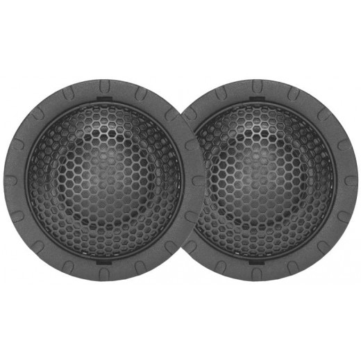 | Typ reproduktorůKoaxiální reproduktory: Koaxiální reproduktory se vyznačují konstrukcí tzv. vše v jednom. Výškový a středobasový reproduktor jsou v jednom koši. Výhodou je jednodušší montáž, ale díky spojení resp. blízkosti pásem v jednom reproduktoru, se obvykle sníží kvalita zvuku. Zpravidla uprostřed středobasového reproduktoru, je výškový reproduktor, jehož kmitací cívka pracuje ve druhé vzduchové mezeře společného magnatického obvodu. Třípásmový koaxiální reproduktor se skládá ze středobasového reproduktoru, ve předu na zvláštním nosníku je středový reproduktor a samostatný výškový. Komponentní reproduktory: Komponentní reproduktory se vyznačují rozdělením na jednotlivá frekvenční pásma, výškové + středobasové + popř. basové pásmo. Jednotlivé reproduktory se dají umístit zcela odděleně, což má za výsledek lepší zvukový i akustický projev. V drtivé většině případů komponentních reproduktorů je dodávaná i externí výhybka, která rozděluje výškové, středové / středobasové a u třípásma i basové pásmo popř. umožňuje nastavení decibelové úrovně u výškového reproduktoru (např. +2 dB, 0 dB, -2 dB), strmosti (např. 6dB/Okt. 12dB/Okt.) či aktivní nebo bi-amp zapojení. | Výškové |