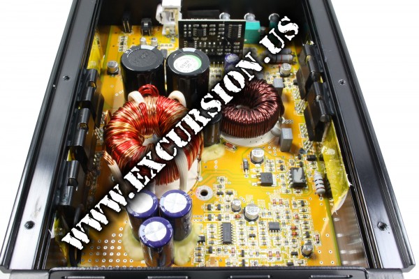 monoblok, 600 W RMS na 2 Ω, třída D, vysokoúrovňový vstup