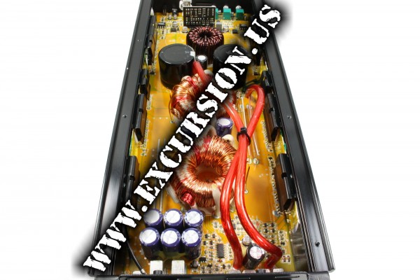 monoblok, 1800 W RMS na 1 Ω, třída D, vysokoúrovňový vstup