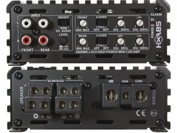 4kanálový, 4 x 150 / 2 x 400 W RMS na 4 Ω, třída D, vysokoúrovňový vstup