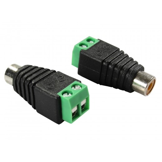 Adaptér - na jedné straně s RCA konektorem a na druhé s možností našroubování reprokabelu. Cena za 2 kusy (1 set).