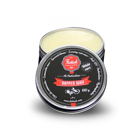 Lak je v běžném provozu a mimo garáž vystaven agresivním vlivům okolí a je třeba ho ochránit kvalitním voskem. Bílá barva vyžaduje větší ochranu, protože je schopna vlivem UV záření silně oxidovat a díky vnějším vlivům (zejména solí) časem žloutnout. Dapper Wax je bělený karnaubský vosk, speciálně navržený pro bílé a jasné barvy, aby vznikla ochrana před UV zářením a zabránilo se tak předčasnému žloutnutí laku. Dapper Wax ochrání lak, zvýrazní lesk a aplikací tohoto vosku docílíte mokrého efektu. Vytvoření hydrofobního filmu po aplikaci bude okamžité a výrazně usnadní budoucí mytí auta. Velmi snadno se nanáší, nemůžete udělat chyby. Dapper Wax vám poskytne více lesku, hodného skutečného "show-car." Doporučujeme aplikaci dvou vrstev Dapper Wax (zvolit 2 hod. interval) na spodní a přední části vozidla (místa, která jsou náchylnější ke znečištění).Jak aplikovat tuhý vosk Fictech Dapper Wax