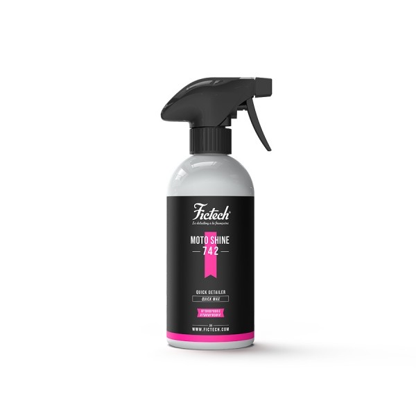 Díky Fictech Moto Shine lze vyčistit znečištěné povrchy motocyklu bez použití vody. Obsahuje kvalitní lubrikační složky, které zabraňují poškrábání laku. Navíc za sebou zanechá lesklý povrch a ochranu proti UV záření. Obnovuje, oživuje a chrání lakované části motocyklu.Hlavní vlastnosti