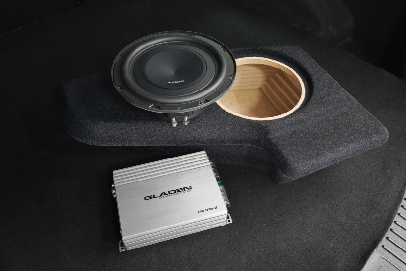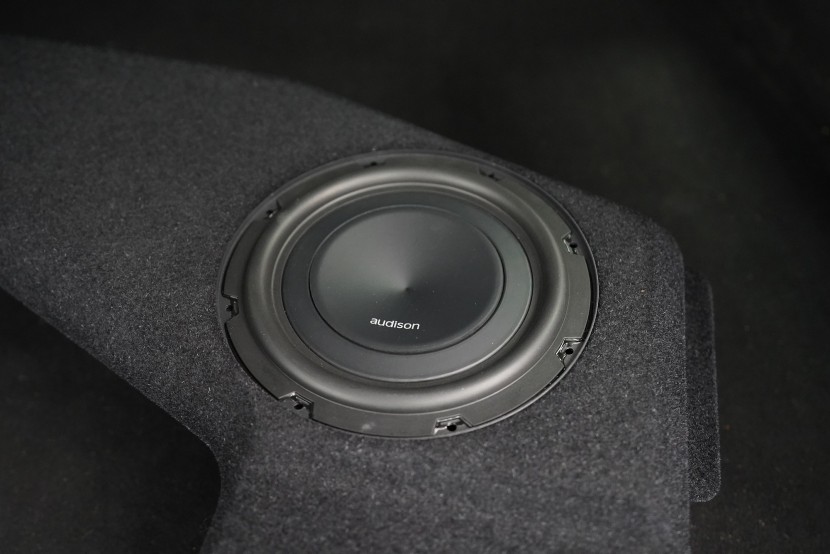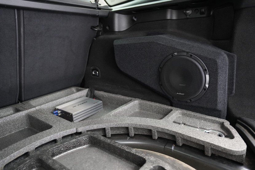 Pro zvýraznění basové složky budeme do zavazadlového prostoru instalovat subwoofer italského výrobce Audison v ozvučnici vyrobené pro tento konkrétní model vozu a samozřejmě nezbytný zesilovač. Záměrem takového řešení je minimální úbytek prostoru v kufru subwooferem.