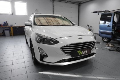 Ozvučení vozu Ford Mondeo MK4. Do předních i zadních dveří jsme nainstalovali ručně vyráběné komponentní reproduktory německého výrobce German Maestro, které poskytují velmi kvalitní zvuk i reálnou vysokou citlivost při zapojení bez externího zesilovače. Pro zvýraznění basové složky jsme do bočnice kufru instalovali subwoofer Audison, který jsme umístili do OEM ozvučnice vyrobené na míru do tohoto vozu. Tento subwoofer vyniká kromě kvalitního přednesu i možností instalace do ozvučnice s malým objemem. Takové řešení nezabírá žádné místo v kufru a výrazně zvýší dynamiku nového ozvučení. Nová je i hlavní jednotka v podobě 2DIN multimediálního autorádia Kenwood s dotykovou obrazovkou, DAB tunerem, WiFi, Apple CarPlay, apod. Tlačítka na volantu pro ovládání autorádia jsme zachovali díky vhodnému adaptéru. Došlo samozřejmě i na tlumení dveří prémiovým antivibračním materiálem Comfortmat řady Dark.
