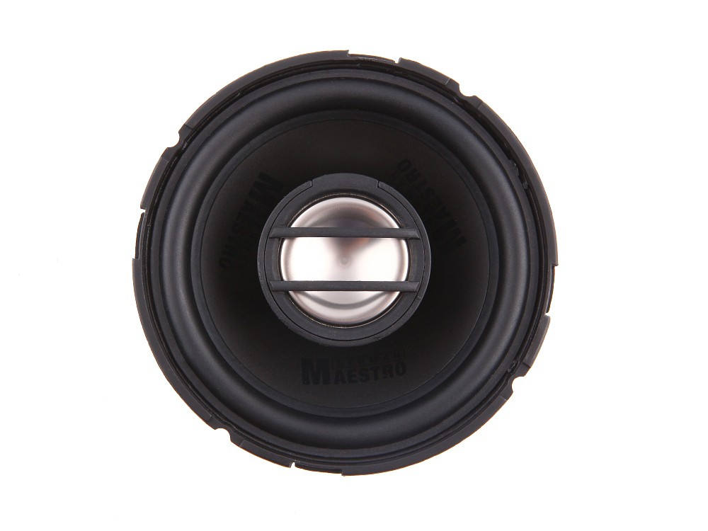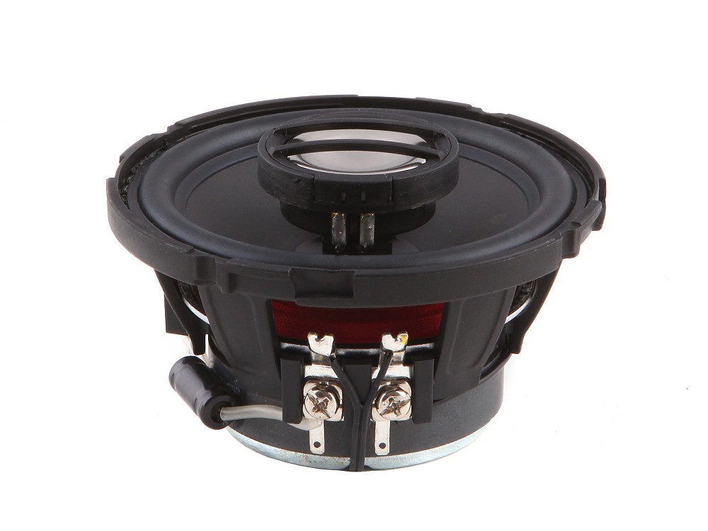 | Typ reproduktorůKoaxiální reproduktory: Koaxiální reproduktory se vyznačují konstrukcí tzv. vše v jednom. Výškový a středobasový reproduktor jsou v jednom koši. Výhodou je jednodušší montáž, ale díky spojení resp. blízkosti pásem v jednom reproduktoru, se obvykle sníží kvalita zvuku. Zpravidla uprostřed středobasového reproduktoru, je výškový reproduktor, jehož kmitací cívka pracuje ve druhé vzduchové mezeře společného magnatického obvodu. Třípásmový koaxiální reproduktor se skládá ze středobasového reproduktoru, ve předu na zvláštním nosníku je středový reproduktor a samostatný výškový. Komponentní reproduktory: Komponentní reproduktory se vyznačují rozdělením na jednotlivá frekvenční pásma, výškové + středobasové + popř. basové pásmo. Jednotlivé reproduktory se dají umístit zcela odděleně, což má za výsledek lepší zvukový i akustický projev. V drtivé většině případů komponentních reproduktorů je dodávaná i externí výhybka, která rozděluje výškové, středové / středobasové a u třípásma i basové pásmo popř. umožňuje nastavení decibelové úrovně u výškového reproduktoru (např. +2 dB, 0 dB, -2 dB), strmosti (např. 6dB/Okt. 12dB/Okt.) či aktivní nebo bi-amp zapojení. | Koaxiální 2 pásmové |