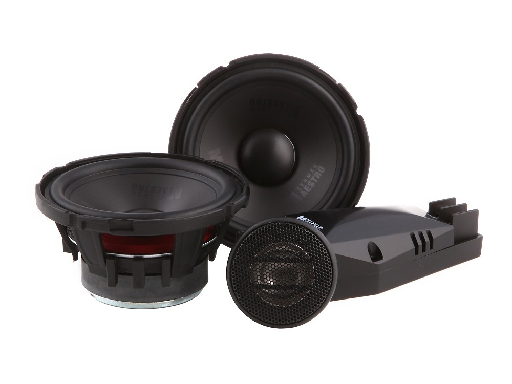 | Typ reproduktorůKoaxiální reproduktory: Koaxiální reproduktory se vyznačují konstrukcí tzv. vše v jednom. Výškový a středobasový reproduktor jsou v jednom koši. Výhodou je jednodušší montáž, ale díky spojení resp. blízkosti pásem v jednom reproduktoru, se obvykle sníží kvalita zvuku. Zpravidla uprostřed středobasového reproduktoru, je výškový reproduktor, jehož kmitací cívka pracuje ve druhé vzduchové mezeře společného magnatického obvodu. Třípásmový koaxiální reproduktor se skládá ze středobasového reproduktoru, ve předu na zvláštním nosníku je středový reproduktor a samostatný výškový. Komponentní reproduktory: Komponentní reproduktory se vyznačují rozdělením na jednotlivá frekvenční pásma, výškové + středobasové + popř. basové pásmo. Jednotlivé reproduktory se dají umístit zcela odděleně, což má za výsledek lepší zvukový i akustický projev. V drtivé většině případů komponentních reproduktorů je dodávaná i externí výhybka, která rozděluje výškové, středové / středobasové a u třípásma i basové pásmo popř. umožňuje nastavení decibelové úrovně u výškového reproduktoru (např. +2 dB, 0 dB, -2 dB), strmosti (např. 6dB/Okt. 12dB/Okt.) či aktivní nebo bi-amp zapojení. | Komponentní 2 pásmové |