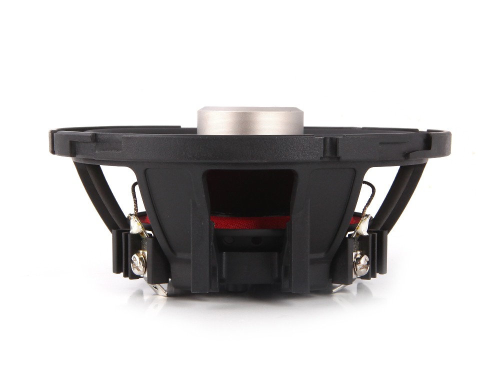 | Typ reproduktorůKoaxiální reproduktory: Koaxiální reproduktory se vyznačují konstrukcí tzv. vše v jednom. Výškový a středobasový reproduktor jsou v jednom koši. Výhodou je jednodušší montáž, ale díky spojení resp. blízkosti pásem v jednom reproduktoru, se obvykle sníží kvalita zvuku. Zpravidla uprostřed středobasového reproduktoru, je výškový reproduktor, jehož kmitací cívka pracuje ve druhé vzduchové mezeře společného magnatického obvodu. Třípásmový koaxiální reproduktor se skládá ze středobasového reproduktoru, ve předu na zvláštním nosníku je středový reproduktor a samostatný výškový. Komponentní reproduktory: Komponentní reproduktory se vyznačují rozdělením na jednotlivá frekvenční pásma, výškové + středobasové + popř. basové pásmo. Jednotlivé reproduktory se dají umístit zcela odděleně, což má za výsledek lepší zvukový i akustický projev. V drtivé většině případů komponentních reproduktorů je dodávaná i externí výhybka, která rozděluje výškové, středové / středobasové a u třípásma i basové pásmo popř. umožňuje nastavení decibelové úrovně u výškového reproduktoru (např. +2 dB, 0 dB, -2 dB), strmosti (např. 6dB/Okt. 12dB/Okt.) či aktivní nebo bi-amp zapojení. | Komponentní 2 pásmové |
