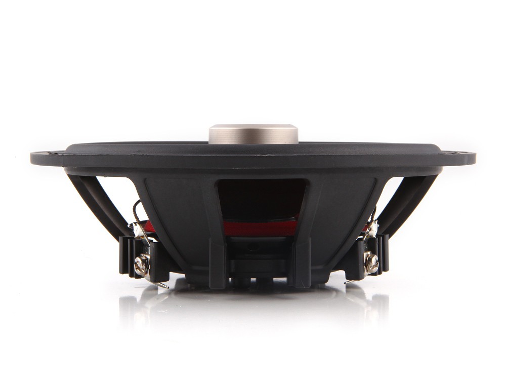 | Typ reproduktorůKoaxiální reproduktory: Koaxiální reproduktory se vyznačují konstrukcí tzv. vše v jednom. Výškový a středobasový reproduktor jsou v jednom koši. Výhodou je jednodušší montáž, ale díky spojení resp. blízkosti pásem v jednom reproduktoru, se obvykle sníží kvalita zvuku. Zpravidla uprostřed středobasového reproduktoru, je výškový reproduktor, jehož kmitací cívka pracuje ve druhé vzduchové mezeře společného magnatického obvodu. Třípásmový koaxiální reproduktor se skládá ze středobasového reproduktoru, ve předu na zvláštním nosníku je středový reproduktor a samostatný výškový. Komponentní reproduktory: Komponentní reproduktory se vyznačují rozdělením na jednotlivá frekvenční pásma, výškové + středobasové + popř. basové pásmo. Jednotlivé reproduktory se dají umístit zcela odděleně, což má za výsledek lepší zvukový i akustický projev. V drtivé většině případů komponentních reproduktorů je dodávaná i externí výhybka, která rozděluje výškové, středové / středobasové a u třípásma i basové pásmo popř. umožňuje nastavení decibelové úrovně u výškového reproduktoru (např. +2 dB, 0 dB, -2 dB), strmosti (např. 6dB/Okt. 12dB/Okt.) či aktivní nebo bi-amp zapojení. | Komponentní 2 pásmové |
