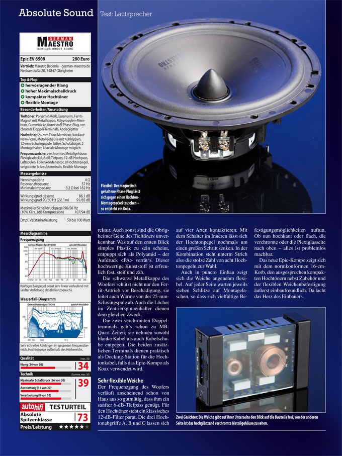 2pásmové komponentní reproduktory z řady Epic - vyjímečný design a vyspělé technologie předurčují těmto reproduktorům vysoké ambice v reálném podání zvuku. Made in Germany.