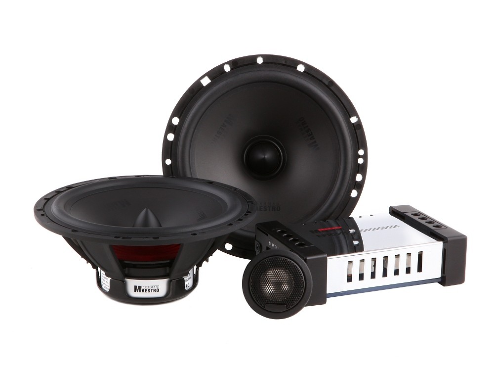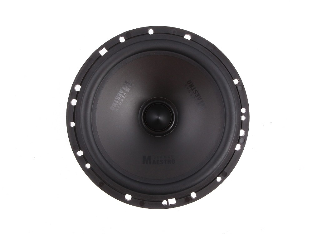 | Typ reproduktorůKoaxiální reproduktory: Koaxiální reproduktory se vyznačují konstrukcí tzv. vše v jednom. Výškový a středobasový reproduktor jsou v jednom koši. Výhodou je jednodušší montáž, ale díky spojení resp. blízkosti pásem v jednom reproduktoru, se obvykle sníží kvalita zvuku. Zpravidla uprostřed středobasového reproduktoru, je výškový reproduktor, jehož kmitací cívka pracuje ve druhé vzduchové mezeře společného magnatického obvodu. Třípásmový koaxiální reproduktor se skládá ze středobasového reproduktoru, ve předu na zvláštním nosníku je středový reproduktor a samostatný výškový. Komponentní reproduktory: Komponentní reproduktory se vyznačují rozdělením na jednotlivá frekvenční pásma, výškové + středobasové + popř. basové pásmo. Jednotlivé reproduktory se dají umístit zcela odděleně, což má za výsledek lepší zvukový i akustický projev. V drtivé většině případů komponentních reproduktorů je dodávaná i externí výhybka, která rozděluje výškové, středové / středobasové a u třípásma i basové pásmo popř. umožňuje nastavení decibelové úrovně u výškového reproduktoru (např. +2 dB, 0 dB, -2 dB), strmosti (např. 6dB/Okt. 12dB/Okt.) či aktivní nebo bi-amp zapojení. | Komponentní 2 pásmové |