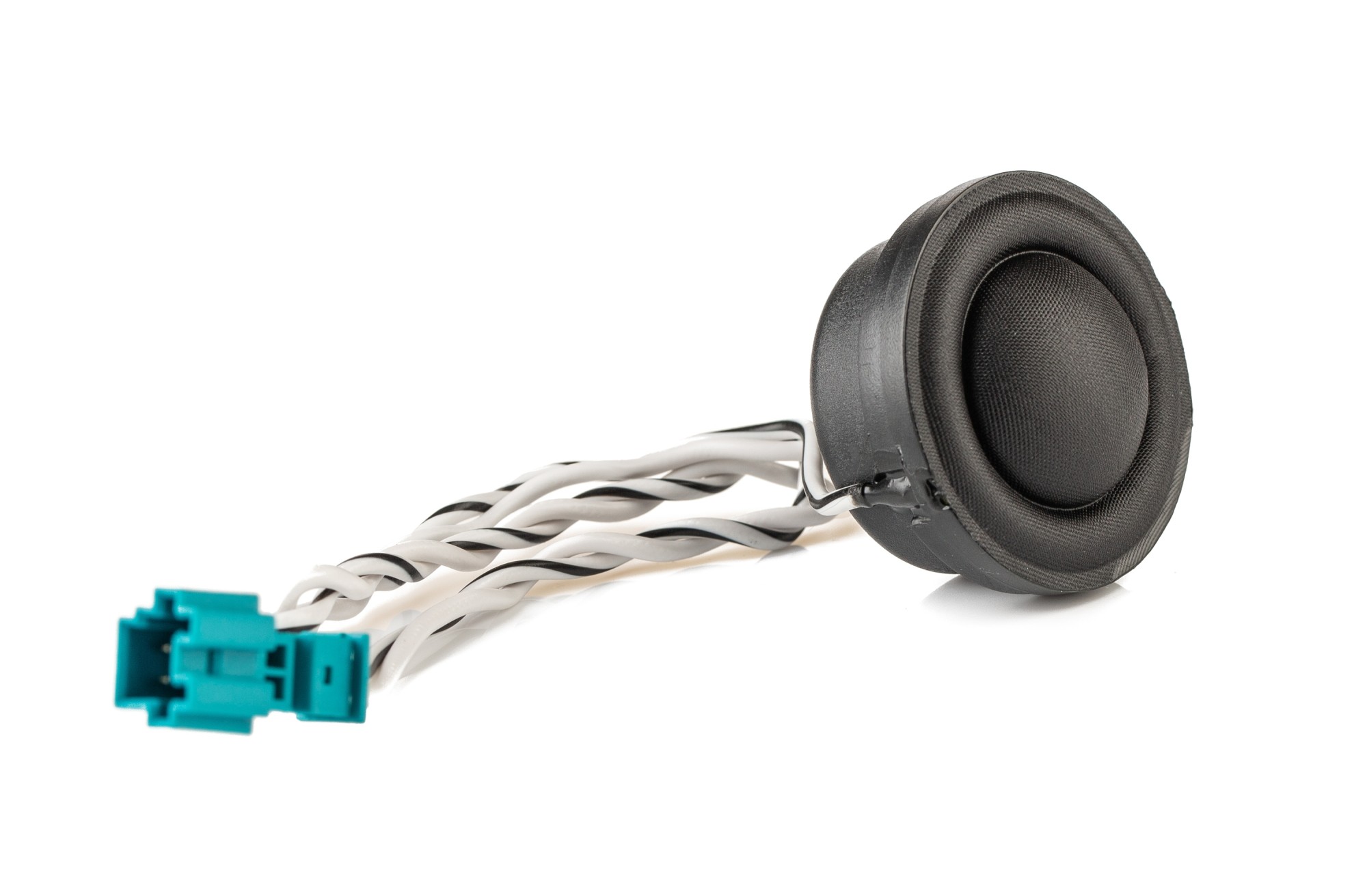 | Typ reproduktorůKoaxiální reproduktory: Koaxiální reproduktory se vyznačují konstrukcí tzv. vše v jednom. Výškový a středobasový reproduktor jsou v jednom koši. Výhodou je jednodušší montáž, ale díky spojení resp. blízkosti pásem v jednom reproduktoru, se obvykle sníží kvalita zvuku. Zpravidla uprostřed středobasového reproduktoru, je výškový reproduktor, jehož kmitací cívka pracuje ve druhé vzduchové mezeře společného magnatického obvodu. Třípásmový koaxiální reproduktor se skládá ze středobasového reproduktoru, ve předu na zvláštním nosníku je středový reproduktor a samostatný výškový. Komponentní reproduktory: Komponentní reproduktory se vyznačují rozdělením na jednotlivá frekvenční pásma, výškové + středobasové + popř. basové pásmo. Jednotlivé reproduktory se dají umístit zcela odděleně, což má za výsledek lepší zvukový i akustický projev. V drtivé většině případů komponentních reproduktorů je dodávaná i externí výhybka, která rozděluje výškové, středové / středobasové a u třípásma i basové pásmo popř. umožňuje nastavení decibelové úrovně u výškového reproduktoru (např. +2 dB, 0 dB, -2 dB), strmosti (např. 6dB/Okt. 12dB/Okt.) či aktivní nebo bi-amp zapojení. | Výškové |