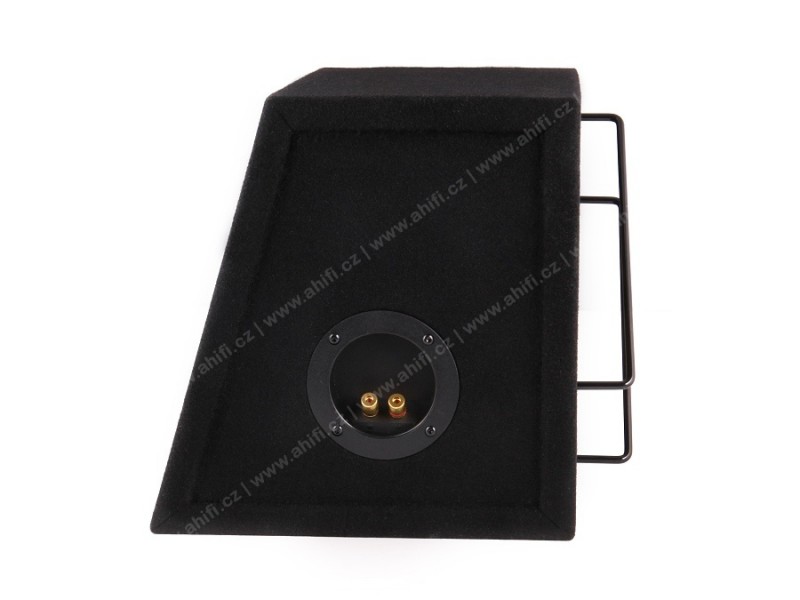 - Ozvučnice je potažená černým kobercem a osazená plastovým terminálem pro připojení.