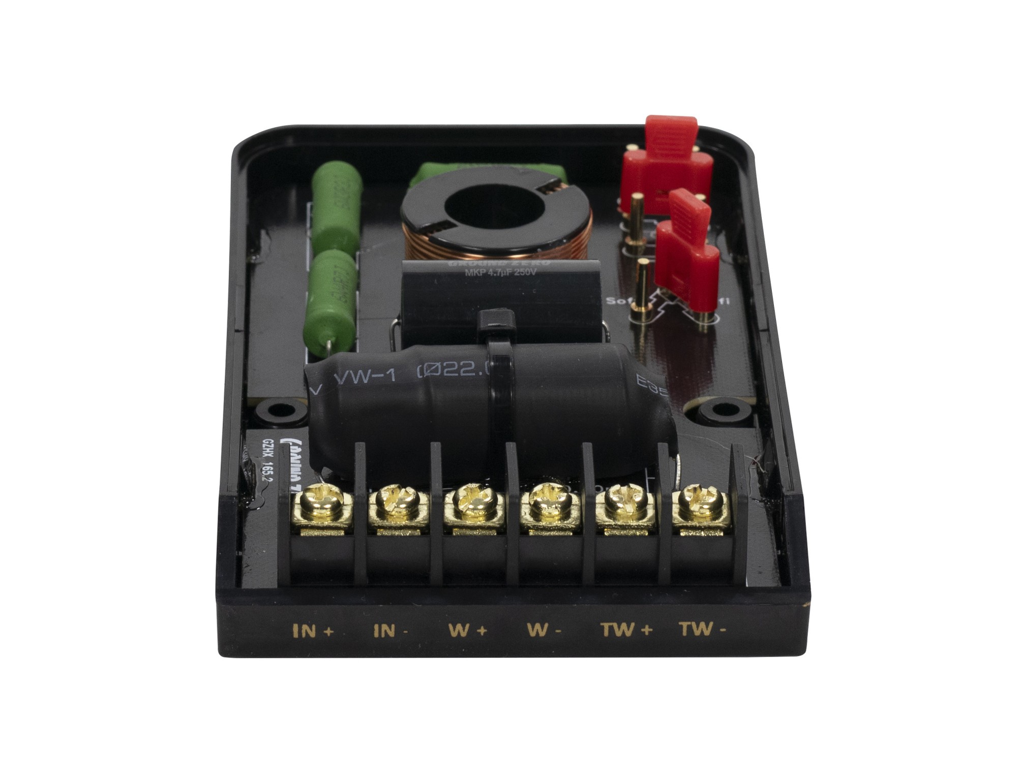 | Frekvenční výhybka součástí baleníFrekvenční výhybka je důležitou součástí defacto všech reproduktorů. Výhybka obvykle obsahuje různé hodnoty odporů, velikosti cívek a typy kondenzátorů, které zcela zásadně upravují zvuk. K čemu výhybky slouží popisujeme níže. Komponentní reproduktory: Součástí každého kvalitní komponentního reprosystému je výhybka. Jejím úkolem je zajistit rozdělení frekvencí, které zesilovač produkuje v celém akustickém spektru kmitočtů tak, aby každý z reproduktorů dostal jen tu část pásma, kterou může optimálně zahrát z hlediska účinnosti a minimálního zkreslení. Koaxiální reproduktory: U koaxiálních reproduktorů bývá z většiny případů jednoduchá výhybka (6dB/Okt.) tvořená kondenzátorem u výškového reproduktoru. | Ano |