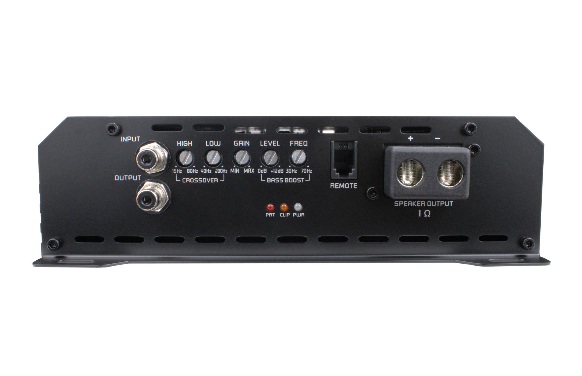 | Horní pásmová propust (HPF)HPF / HP resp. "hi pass filter" nabízí možnost nastavení zesilovače pomocí potenciometru tak, aby střední, případně středobasové a výškové frekvence hrály od určité frekvence směrem nahoru. Příklad: Zesilovače mají nejčastěji HPF od 40 do 300 Hz. Pokud nastavíme na potenciometru hodnotu cca. 150 Hz, budou zvuk ořezán tak, že bude hrát frekvence od 150 Hz až po maximální horní hranici celého frekvenčního rozsahu zesilovače, třeba až 20.000 Hz. Doporučujeme nastavovat tento potenciometr v rozmezí 80-160 Hz. Díky této možnosti nastavení snesou reproduktory vyšší výkon, jelikož je nebudete přetěžovat basy ve spodním frekvenčním pásmu. | 15 Hz – 80 Hz |