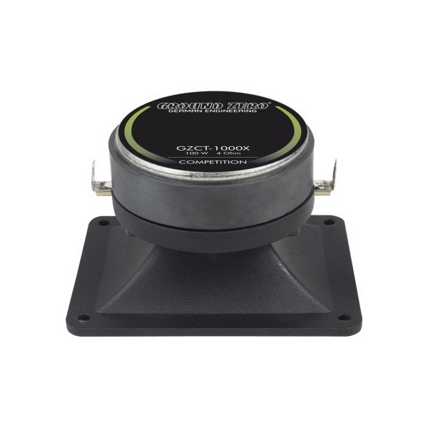 Zážitek skutečné koncertní atmosféry nebo klubového pocitu si žádá profesionální vysoké úrovně SPL. To však vyžaduje velmi speciální a výkonné reproduktory a také zesilovače. Pro vysokofrekvenční a střední reprodukci nabízí řada COMPETITION sérii vysoce účinných výškových reproduktorů s kompresí ve vysokém dosahu a různé středové reproduktory. Vývojové oddělení Ground Zero nedělá kompromisy. Z tohoto důvodu jsou produkty řady COMPETITION tou správnou volbou pro náročné zákazníky s vysokými požadavky na úroveň SPL. Ground Zero GZCT 1000X je 25 mm vysoce výkonný kompresní výškový reproduktor s hliníkovou kopulí a rozptylem 60 × 90°.Hlavní vlastnosti