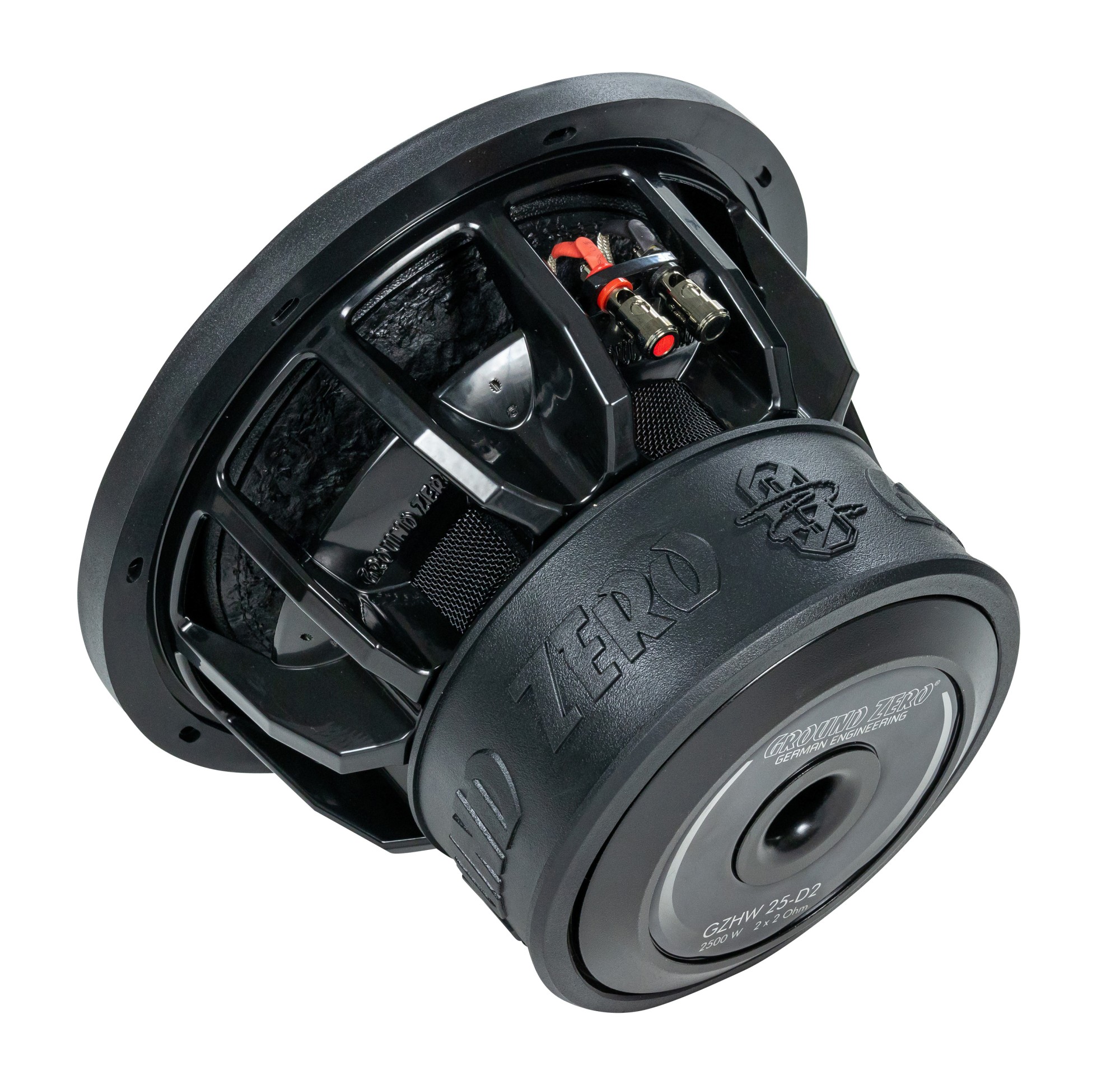 Ground Zero GZHW 25-D1 je vysoce výkonný subwoofer určený pro SPL aplikace, kde je cílem dosažení maximálního akustického tlaku bez kompromisů v mechanické odolnosti a stabilitě. Model pochází z inovované řady Hydrogen, která přináší nejen modernizovaný design, ale i vylepšené materiály a konstrukční řešení s důrazem na extrémní zatížitelnost. Díky výkonu 1200 W RMS je tento subwoofer navržen pro náročné instalace, kde hraje hlavní roli síla, dynamika a schopnost dlouhodobě pracovat při vysokém zatížení. Zesílená papírová membrána v kombinaci s karbonovou prachovkou zajišťuje potřebnou tuhost i při extrémních výchylkách, zatímco dlouhozdvihové zavěšení umožňuje efektivní přenos energie do prostoru. Celková konstrukce je optimalizována pro použití ve větších bassreflexových ozvučnicích, kde dokáže měnič nabídnout maximální výkon a výrazný, úderný basový projev.Řada Hydrogen – vyvážený výkon a kvalita zvuku