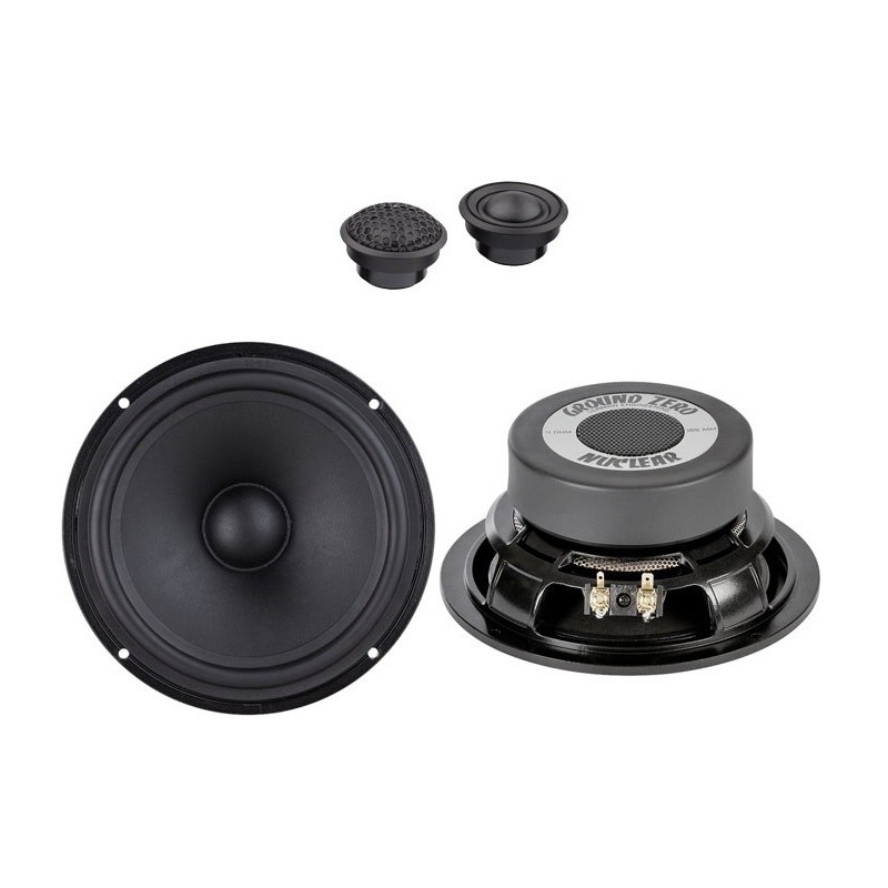 | Typ reproduktorůKoaxiální reproduktory: Koaxiální reproduktory se vyznačují konstrukcí tzv. vše v jednom. Výškový a středobasový reproduktor jsou v jednom koši. Výhodou je jednodušší montáž, ale díky spojení resp. blízkosti pásem v jednom reproduktoru, se obvykle sníží kvalita zvuku. Zpravidla uprostřed středobasového reproduktoru, je výškový reproduktor, jehož kmitací cívka pracuje ve druhé vzduchové mezeře společného magnatického obvodu. Třípásmový koaxiální reproduktor se skládá ze středobasového reproduktoru, ve předu na zvláštním nosníku je středový reproduktor a samostatný výškový. Komponentní reproduktory: Komponentní reproduktory se vyznačují rozdělením na jednotlivá frekvenční pásma, výškové + středobasové + popř. basové pásmo. Jednotlivé reproduktory se dají umístit zcela odděleně, což má za výsledek lepší zvukový i akustický projev. V drtivé většině případů komponentních reproduktorů je dodávaná i externí výhybka, která rozděluje výškové, středové / středobasové a u třípásma i basové pásmo popř. umožňuje nastavení decibelové úrovně u výškového reproduktoru (např. +2 dB, 0 dB, -2 dB), strmosti (např. 6dB/Okt. 12dB/Okt.) či aktivní nebo bi-amp zapojení. | Komponentní 2pásmové |