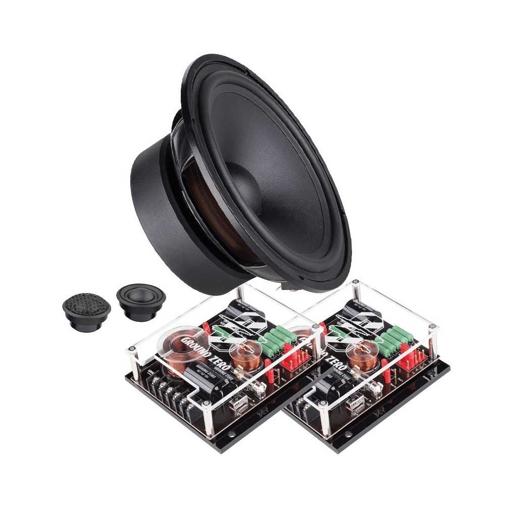 | Typ reproduktorůKoaxiální reproduktory: Koaxiální reproduktory se vyznačují konstrukcí tzv. vše v jednom. Výškový a středobasový reproduktor jsou v jednom koši. Výhodou je jednodušší montáž, ale díky spojení resp. blízkosti pásem v jednom reproduktoru, se obvykle sníží kvalita zvuku. Zpravidla uprostřed středobasového reproduktoru, je výškový reproduktor, jehož kmitací cívka pracuje ve druhé vzduchové mezeře společného magnatického obvodu. Třípásmový koaxiální reproduktor se skládá ze středobasového reproduktoru, ve předu na zvláštním nosníku je středový reproduktor a samostatný výškový. Komponentní reproduktory: Komponentní reproduktory se vyznačují rozdělením na jednotlivá frekvenční pásma, výškové + středobasové + popř. basové pásmo. Jednotlivé reproduktory se dají umístit zcela odděleně, což má za výsledek lepší zvukový i akustický projev. V drtivé většině případů komponentních reproduktorů je dodávaná i externí výhybka, která rozděluje výškové, středové / středobasové a u třípásma i basové pásmo popř. umožňuje nastavení decibelové úrovně u výškového reproduktoru (např. +2 dB, 0 dB, -2 dB), strmosti (např. 6dB/Okt. 12dB/Okt.) či aktivní nebo bi-amp zapojení. | Komponentní 2pásmové |