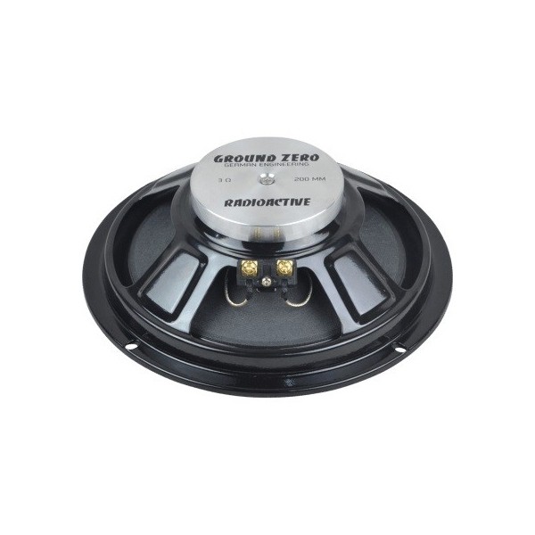 | Průměr středobasového reproduktoruPrůměr reproduktoru uvádíme jako průměr celého reproduktoru, nikoliv včetně uchycení, kdy u menších reproduktorů (87, 100, 130 mm) vyčnívají ještě navíc úchyty. Některé reproduktory jsou oválné a tam se uvádí rozměr v palcích, vždy nejkratší strana k nejdelší straně. Jeden palce je cca. 2,5 cm. | 200 mm (8") |