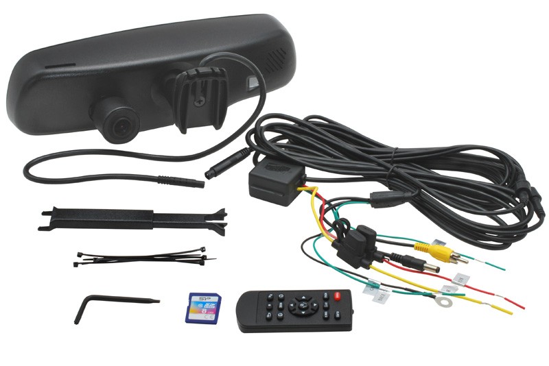 Kamera je umístěná v přední části zpětného zrcátka tak, aby monitorovala situaci před vozidlem. Záznam obrazu a zvuku z této kamery je nahráván na SD kartu umístěnou ve slotu v horní části zpětného zrcátka. Záznam je nahráván ve smyčce po jednotlivých blocích současně s informací o datu a času pořízení. Zařízení umožňuje zobrazení zpětné parkovací kamery po zařazení zpátečky. Tato kamera není součástí balení.