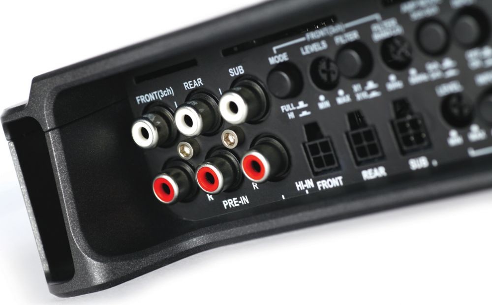 | Počet kanálů zesilovačeZesilovače se rozdělují na: - Monobloky - 2kanálové - 3kanálové - 4kanálové - 5kanálové - 6kanálové - více kanálové Každý kanál slouží na napájení jednoho reproduktoru u koaxialního typu, popř. jedné strany, pokud se jedná o komponentní reproduktory. Zesilovače typu monoblok se používají hlavně na subwoofery. 2kanálové jsou vhodné jak na subwoofery, tak například na přední pár reproduktorů v autě. 3kanálové se používá na přední nebo zadní reproduktory + subwoofer. 4kanálové se používají na přední + zadní reproduktory nebo 1 pár reproduktorů + subwoofer. 6 nebo 5kanálové se používají na 2 páry reproduktorů + subwoofer, nejčastěji. Můstkování znamená zapojení zesilovače do můstku, kdy se použije + pól z jednoho kanálu a - pól z druhého kanálu. Ve většině případů to bývá na zesilovači znázorněné jako "BRIDGED". | 4 |
