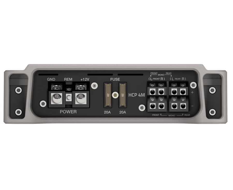Námořní zesilovač HCP 4M se vyznačuje kompaktním designem připraveným čelit prostředí otevřené vody a poskytuje spoustu čisté energie. Chladič HCP M byl vyroben z extrudovaného hliníku, materiálu, který nemá konkurenci pro lehkost, robustnost a odvod tepla. Aby se velikost udržela na minimu, jsou výkonové tranzistory umístěny mezi desku plošných spojů a horní stranu chladiče, kde se shromažďuje teplo. Nahromaděné teplo je pak směrováno do speciálních rozptylových „křídel“ po straně zesilovače. Vstupy Pre-In i Speaker-In mají speciální vyvážený obvod, který zajišťuje vysokou odolnost proti elektromagnetickému rušení pro výsledky bez šumu. Dělicí sekce zesilovačů HCP M zajišťuje extrémní flexibilitu: plně nastavitelné Lo-pass, Hi-pass filtry s 12 dB/Oct. a 24 dB/říjen sklony podle modelu zesilovače; Bass Boost je také k dispozici pro vylepšení nízkých frekvencí. Přesněji řečeno, HCP 4M nabízí Hi-Pass předzesilované výstupy, které umožňují vytvořit pásmovou propust na předním basovém reproduktoru.| Katalogové číslo | HCP 4M |