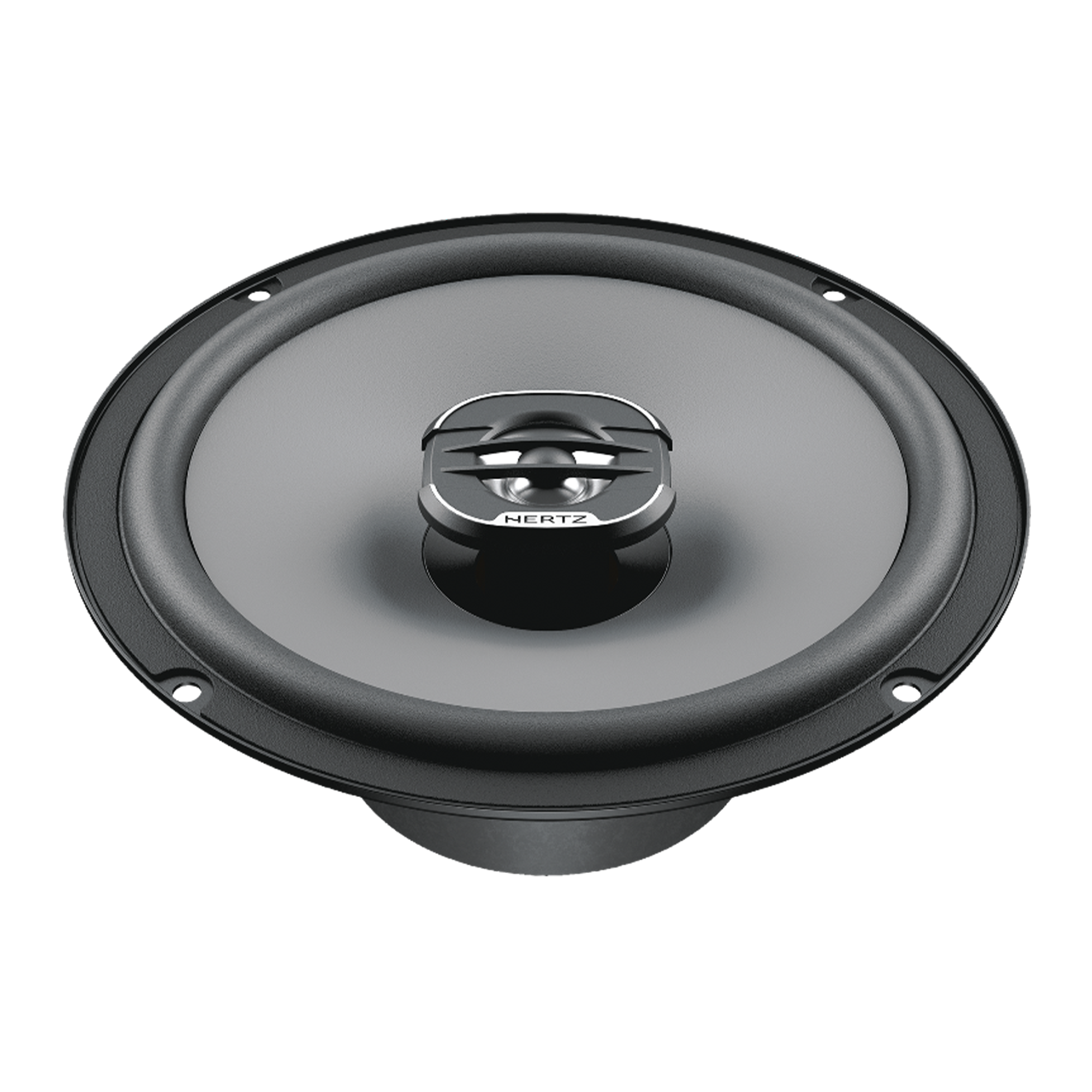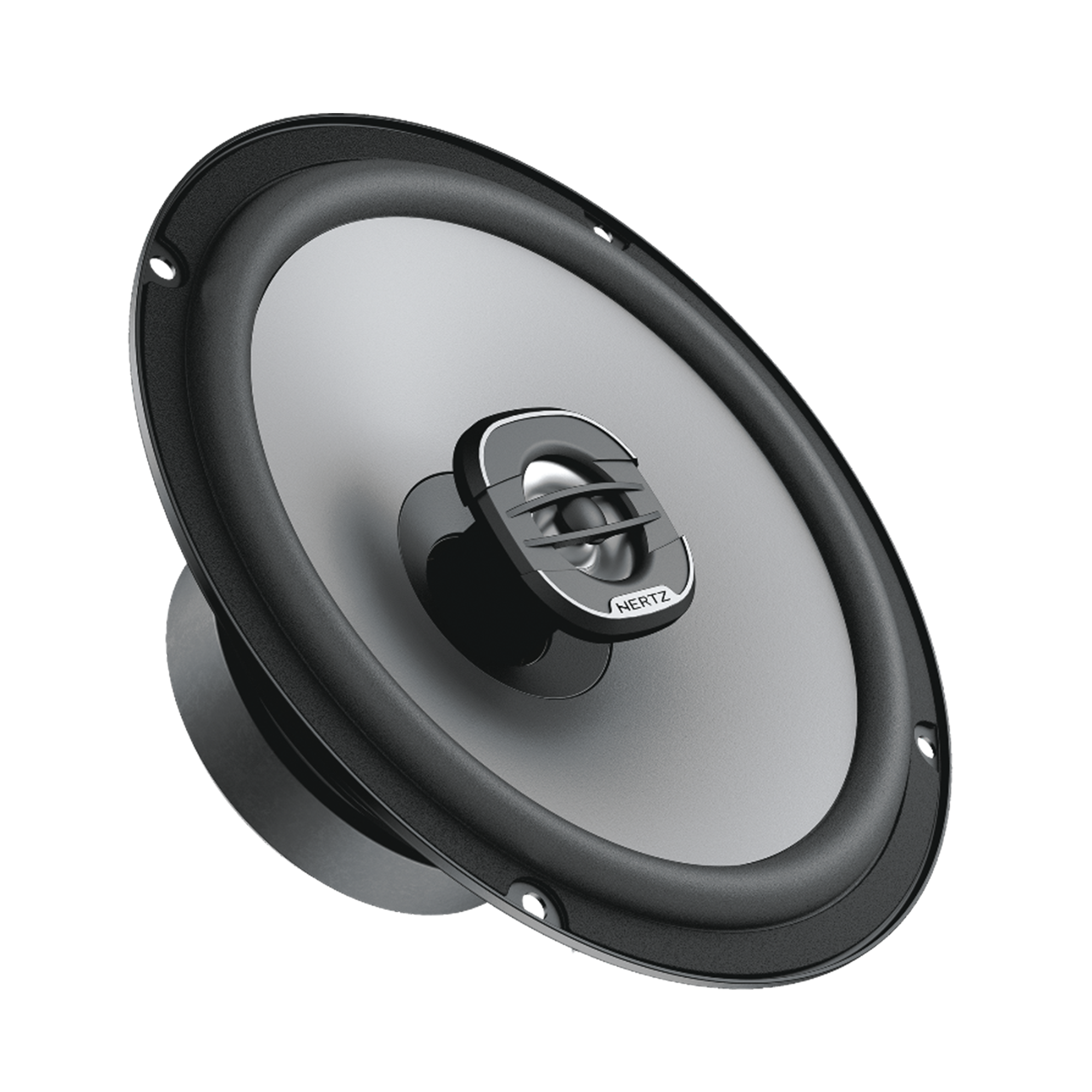 6,5" dvoupásmové koaxiální reproduktory Hertz X 165 jsou vybaveny speciálně navrženým čelním panelem výškového reproduktoru optimalizovaným pro vysoký výkon, který zajišťuje lineární frekvenční odezvu. Kmitací membrána z lisovaného papíru odpuzující vodu spolu s pěnovým závěsem poskytují velmi vysokou zatížitelnost a prodlouženou odezvu nízkých kmitočtů, aby se dosáhlo bohatého zvuku, i když jsou reproduktory napájeny jen ze samotného autorádia. 25mm středobasová kmitací cívka poháněná feritovým magnetem s vysokou hustotou toku nabízí dynamický výkon a nezkreslený zvuk.Hlavní vlastnosti