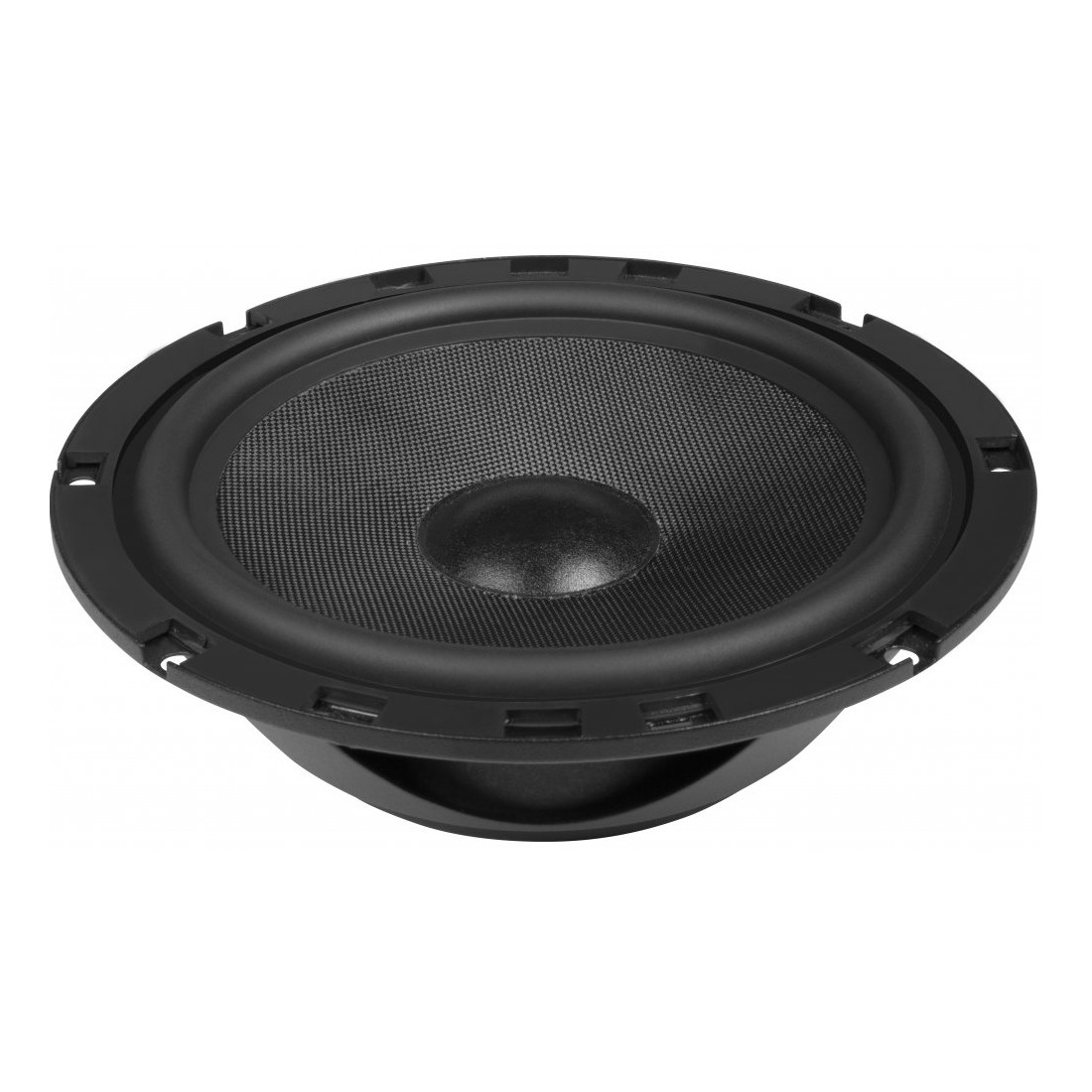 | Průměr středobasového reproduktoruPrůměr reproduktoru uvádíme jako průměr celého reproduktoru, nikoliv včetně uchycení, kdy u menších reproduktorů (87, 100, 130 mm) vyčnívají ještě navíc úchyty. Některé reproduktory jsou oválné a tam se uvádí rozměr v palcích, vždy nejkratší strana k nejdelší straně. Jeden palce je cca. 2,5 cm. | 165 mm |