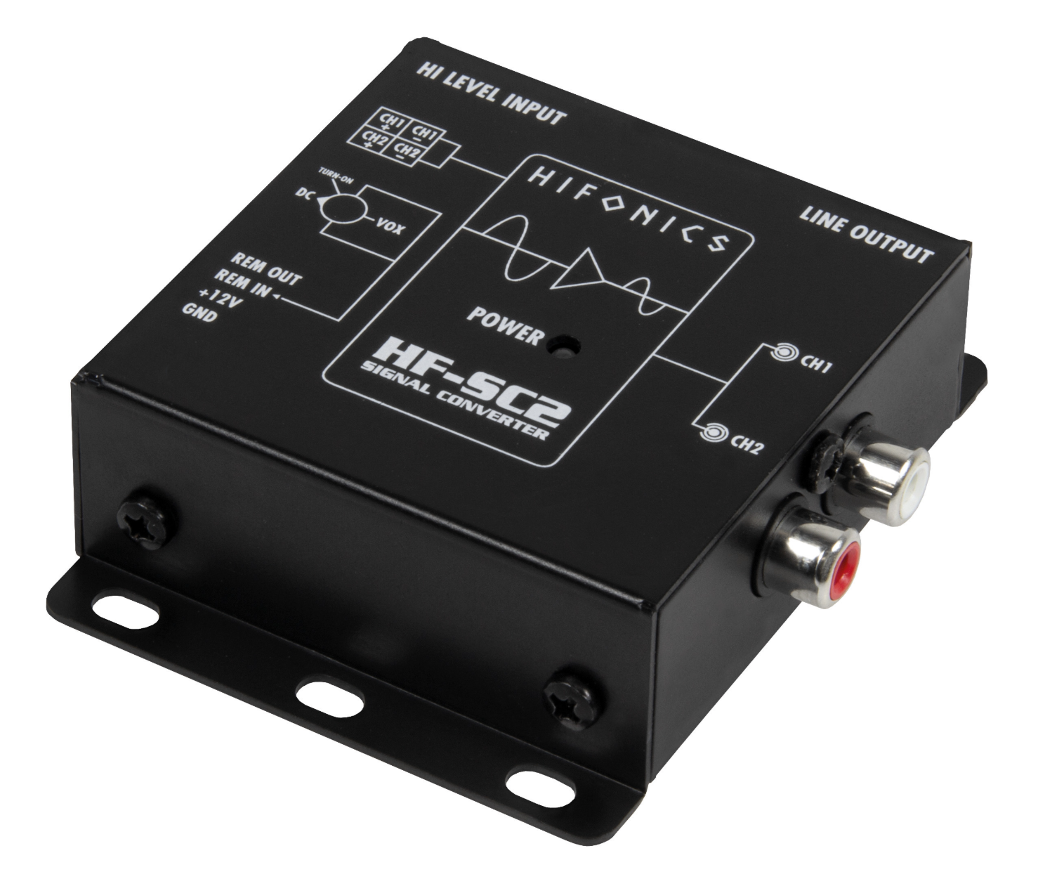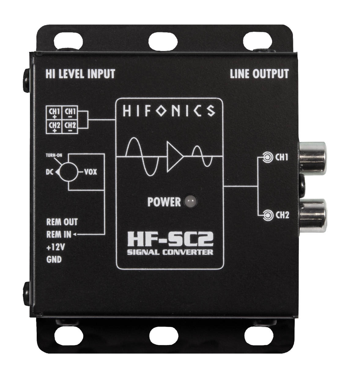 Převodníky signálu od Hifonics zaujmou svými skvělými zvukovými vlastnostmi. Vývojáři přikládali velký význam vynikajícím technickým údajům již od fáze koncepce. A mohou být skutečně vidět a slyšet - senzačně vysoké poměry signálu k šumu 115 - 121 dB s velmi nízkými faktory zkreslení 0,001 % současně. Tyto převodníky jsou navrženy pro připojení k běžným autorádiím, která dodávají až 50 W RMS na kanál do 2 ohmů. Jako další zvláštnost mají vícekanálové převodníky integrovanou funkci součtu. Tento obvod je „must have“ pro mnoho nových vozidel, pokud nelze hudební signál odposlouchávat „na jeden zátah“, ale frekvenční rozsahy pro továrně instalované reproduktory byly elektricky odděleny. Konvenční převodník by zde byl zcela zbytečný. U převodníků HF-SC lze rozdělené výstupní signály z továrního systému jednoduše opět sloučit aktivací funkce "MIXED". Sofistikovaná elektronika pak na výstupech generuje signál v plném rozsahu, kterým lze optimálně napájet externí DSP nebo zesilovače. Díky EPS lze převodníky snadno připojit i k továrním rádiím, které mají tzv. obvod detekce zátěže. Další funkci pro potlačení rušení lze aktivovat pomocí propojek "Floating Ground".