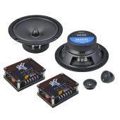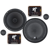 | Typ reproduktorůKoaxiální reproduktory: Koaxiální reproduktory se vyznačují konstrukcí tzv. vše v jednom. Výškový a středobasový reproduktor jsou v jednom koši. Výhodou je jednodušší montáž, ale díky spojení resp. blízkosti pásem v jednom reproduktoru, se obvykle sníží kvalita zvuku. Zpravidla uprostřed středobasového reproduktoru, je výškový reproduktor, jehož kmitací cívka pracuje ve druhé vzduchové mezeře společného magnatického obvodu. Třípásmový koaxiální reproduktor se skládá ze středobasového reproduktoru, ve předu na zvláštním nosníku je středový reproduktor a samostatný výškový. Komponentní reproduktory: Komponentní reproduktory se vyznačují rozdělením na jednotlivá frekvenční pásma, výškové + středobasové + popř. basové pásmo. Jednotlivé reproduktory se dají umístit zcela odděleně, což má za výsledek lepší zvukový i akustický projev. V drtivé většině případů komponentních reproduktorů je dodávaná i externí výhybka, která rozděluje výškové, středové / středobasové a u třípásma i basové pásmo popř. umožňuje nastavení decibelové úrovně u výškového reproduktoru (např. +2 dB, 0 dB, -2 dB), strmosti (např. 6dB/Okt. 12dB/Okt.) či aktivní nebo bi-amp zapojení. | Komponentní 2pásmové |