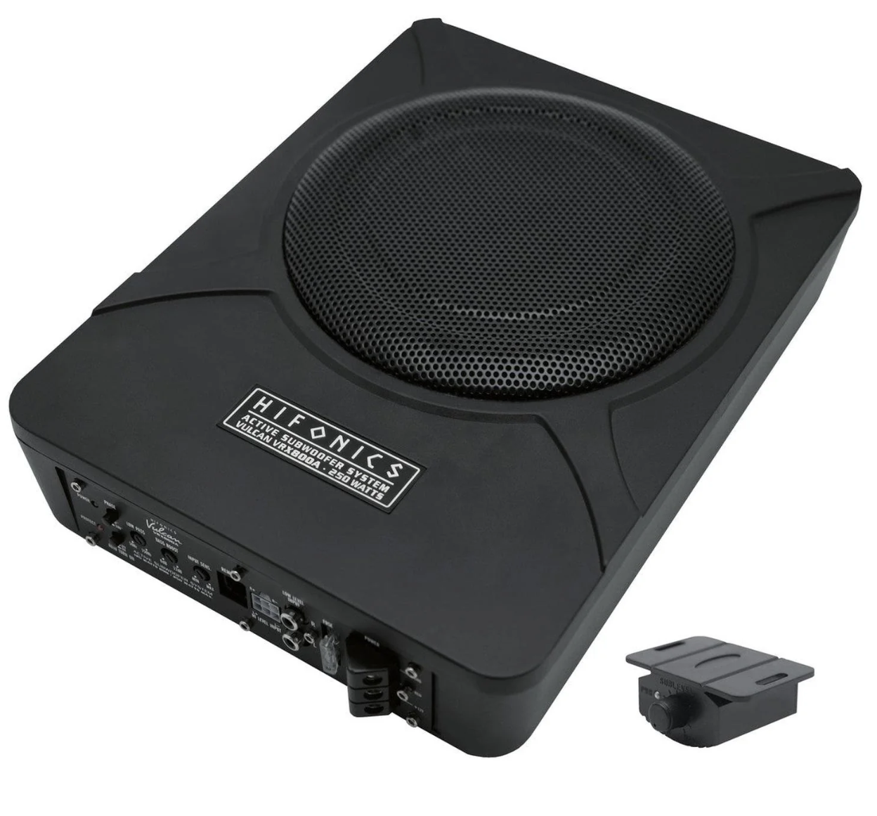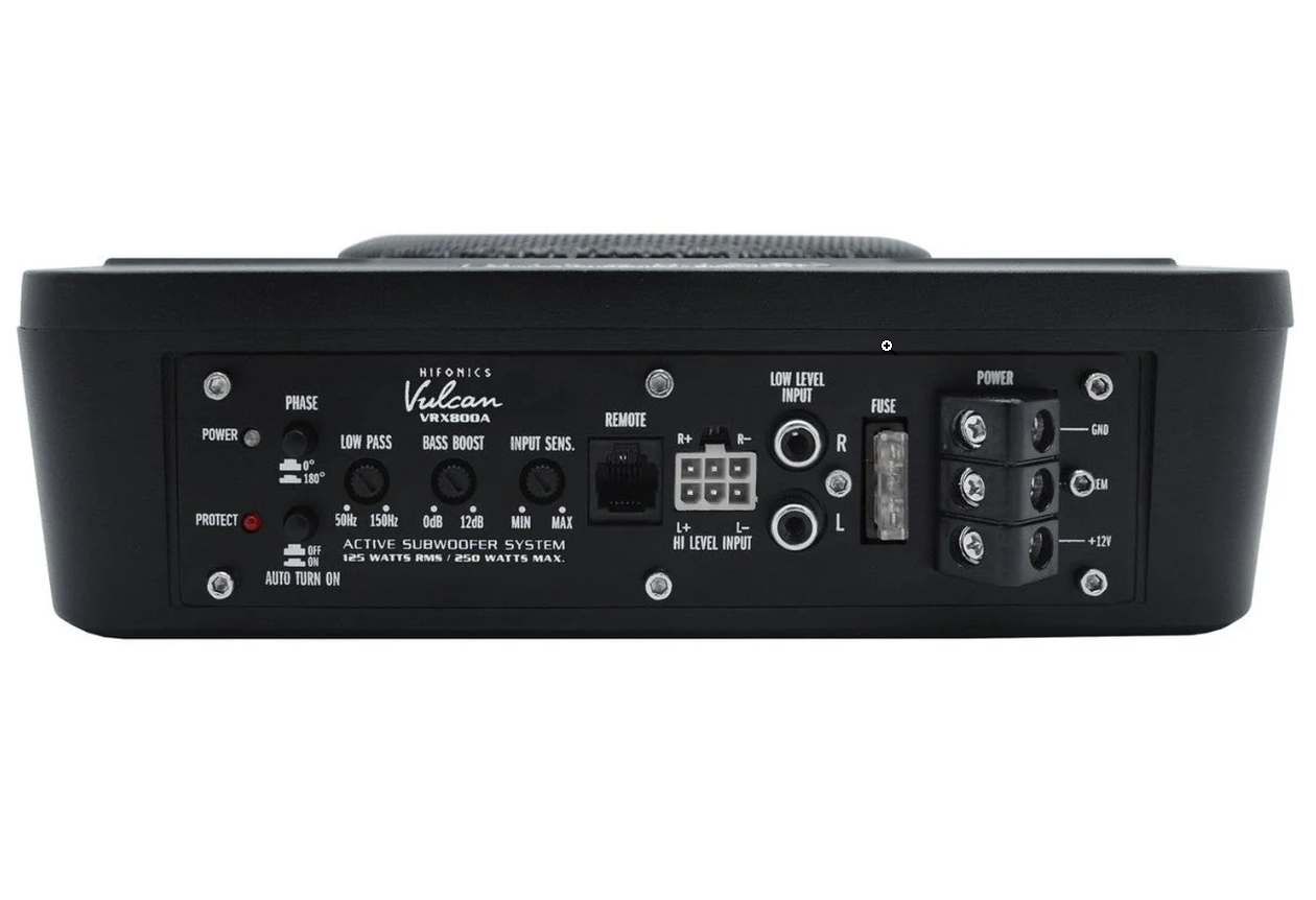 Hifonics rozšiřuje svou nabídku o výkonné subwoofery pod sedadlo VULCAN VRX v provedení 20 a 25 cm s celohliníkovým tělem. Tyto subwoofery zaujmou nejen atraktivní cenou, ale také vysokou kvalitou zpracování a plnou výbavou, kterou Hifonics fanoušci po celém světě oceňují. Na rozdíl od mnoha levných podsedadlových subwooferů, kde se často používají úsporné zesilovače nebo levné integrované obvody, mají oba nové modely plnohodnotné Class A/B Mosfet koncové stupně, které jsou velmi stabilní při zátěži a vždy dodávají dostatek výkonu. S maximálním výkonem 250 W u 8" (20 cm) modelu a 300 W u 10" (25 cm) modelu skvěle pohánějí speciální nízkotónové měniče. Subwoofery mají navíc extra pevné membrány, které vydrží vysoký tlak vznikající v malých ozvučných skříních kompresí vzduchu. Běžné basy se standardními membránami by zde praskaly. Díky nastavitelnému low-pass filtru, bass boostu, přepínatelnému fázovému posuvu a dálkovému ovladači hlasitosti basů je připojení k systému téměř dokonalé. Oba modely mají také high-level vstup s automatickým zapnutím, takže je lze připojit i k továrním autorádiím bez cinch výstupu.