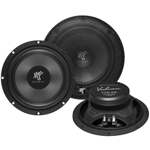 | Typ reproduktorůKoaxiální reproduktory: Koaxiální reproduktory se vyznačují konstrukcí tzv. vše v jednom. Výškový a středobasový reproduktor jsou v jednom koši. Výhodou je jednodušší montáž, ale díky spojení resp. blízkosti pásem v jednom reproduktoru, se obvykle sníží kvalita zvuku. Zpravidla uprostřed středobasového reproduktoru, je výškový reproduktor, jehož kmitací cívka pracuje ve druhé vzduchové mezeře společného magnatického obvodu. Třípásmový koaxiální reproduktor se skládá ze středobasového reproduktoru, ve předu na zvláštním nosníku je středový reproduktor a samostatný výškový. Komponentní reproduktory: Komponentní reproduktory se vyznačují rozdělením na jednotlivá frekvenční pásma, výškové + středobasové + popř. basové pásmo. Jednotlivé reproduktory se dají umístit zcela odděleně, což má za výsledek lepší zvukový i akustický projev. V drtivé většině případů komponentních reproduktorů je dodávaná i externí výhybka, která rozděluje výškové, středové / středobasové a u třípásma i basové pásmo popř. umožňuje nastavení decibelové úrovně u výškového reproduktoru (např. +2 dB, 0 dB, -2 dB), strmosti (např. 6dB/Okt. 12dB/Okt.) či aktivní nebo bi-amp zapojení. | Středobasové |