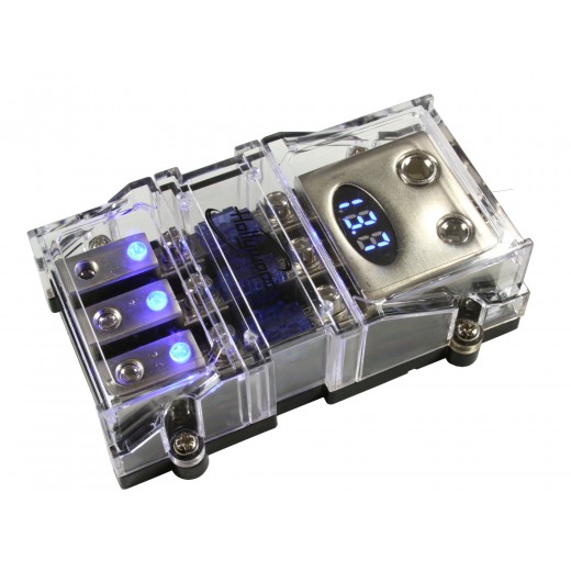 - Pojistkový distribuční blok pro 3 x MINI ANL s voltmetrem.