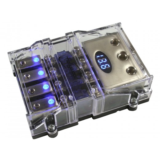 - Pojistkový distribuční blok pro 4 x MINI ANL s voltmetrem.