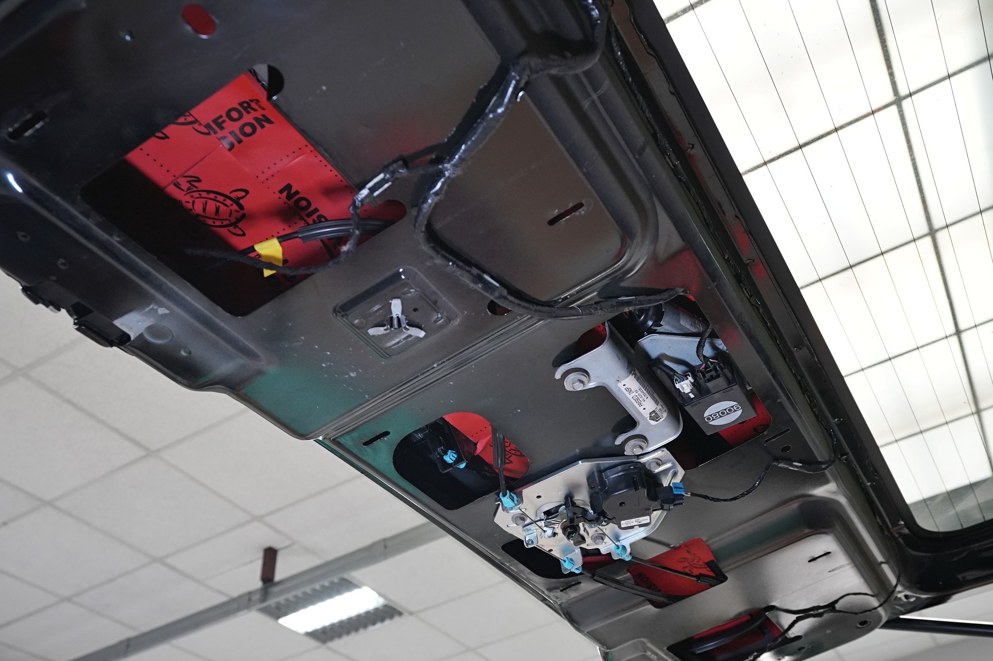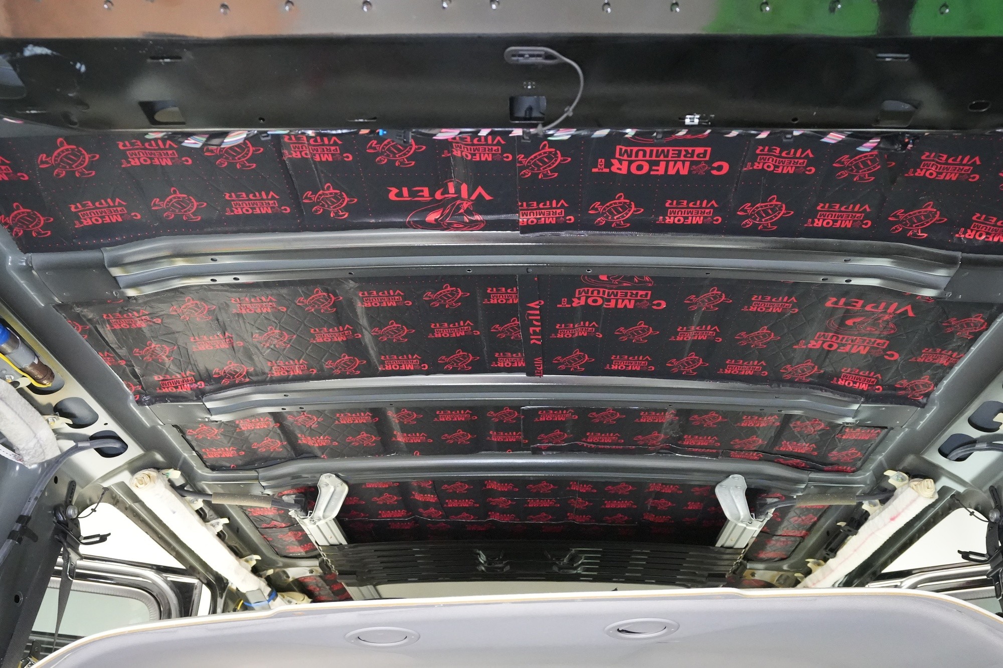 Odhlučňujeme dvěma vrstvami i střechu. První vrstvu tvoří antivibrační materiál Comfortmat Viper. Viper střechu zpevní, zamezí vibracím a například i hluku od dešťových kapek. Díky důkladnému rozválečkování a perfektní adhezi materiálu se nemusíte obávat odlepení během celé životnosti vozu.