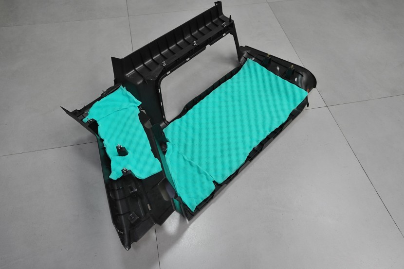 V první fázi jsme prakticky všechny přístupné oblasti opatřili špičkovým materiálem na bázi polyuretanové pěny Comfortmat Soft Wave Expert, který vyniká excelentní schopností absorpce hluku. Extrémní flexibilita materiálu, který lze ze své tloušťky 15 mm zmáčknout až na 1 mm, umožní bezproblémovou opětovnou montáž palubní desky.
